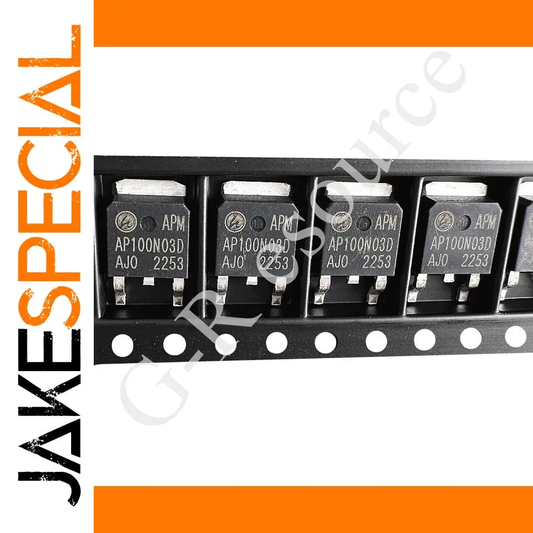 - Miniaturized in a compact TO-252 package with clear white markings—model number AP100N03D, batch code “2253”—for easy identification and troubleshooting.