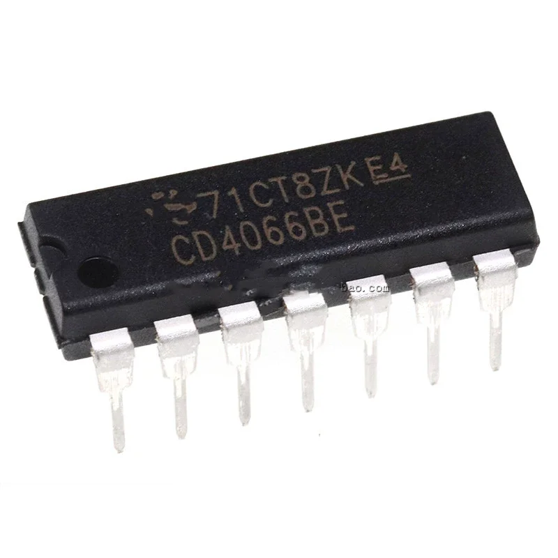 - Set of 10 high-grade CD4066BE chips designed in a DIP-14 package for versatile analog switching applications.