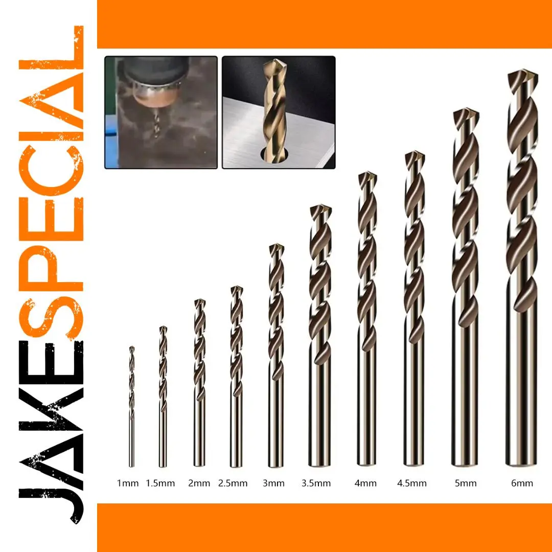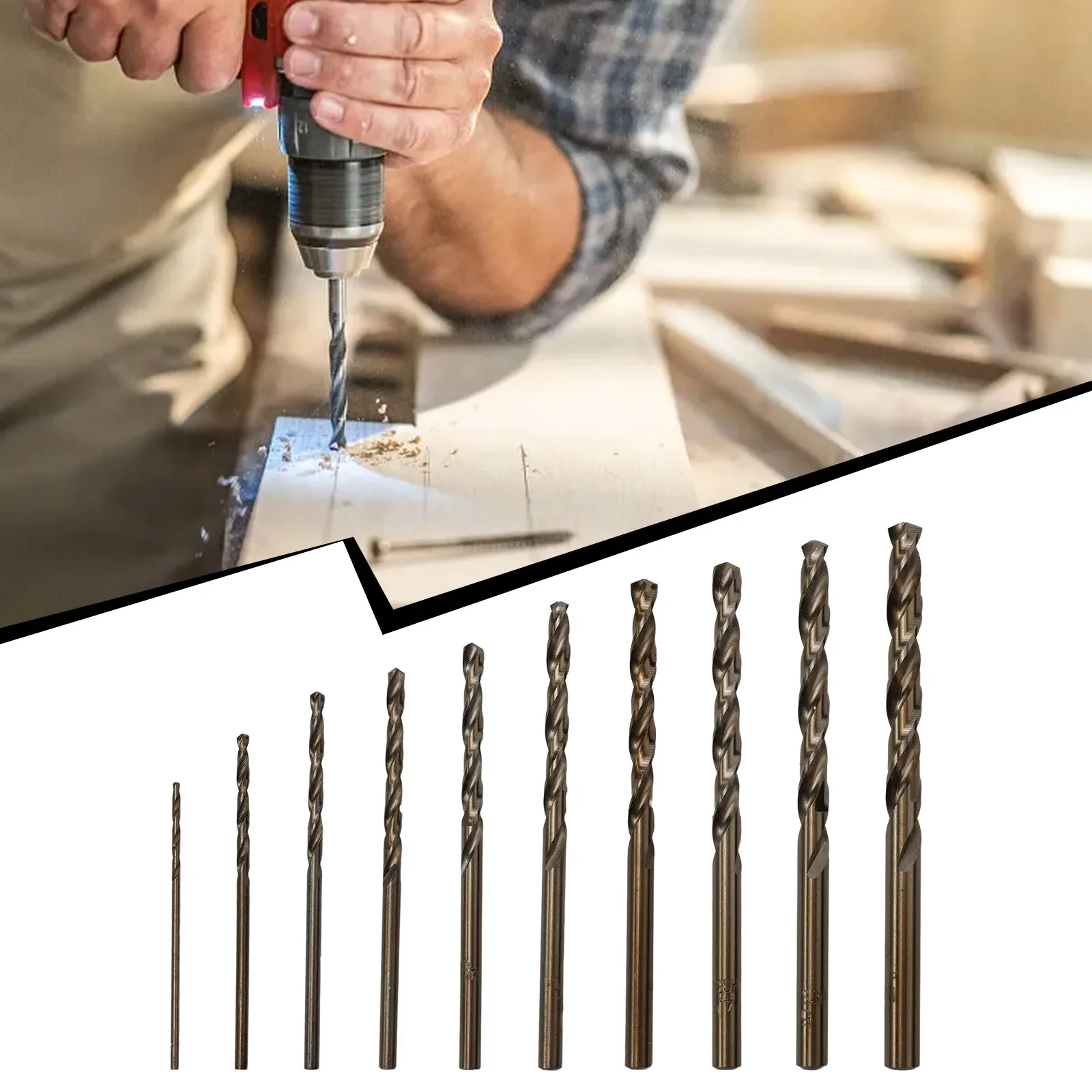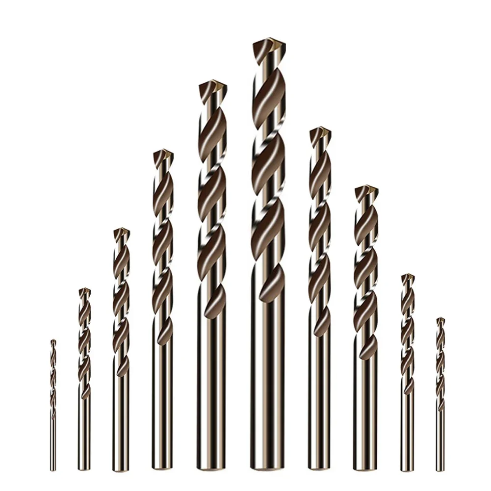 Experience precision and durability with this set of ten high-quality cobalt drill bits. Designed with a sleek, metallic finish in a striking bronze hue, these bits are perfect for tackling woodworking, metal, stainless steel, and iron drilling tasks. The twisted flute design enhances cutting efficiency while the round shank provides a secure grip in your drill. Featuring sizes from 1mm to 6mm, you can easily select the right bit for each project. These bits are a reliable choice for both professional craftsmen and DIY enthusiasts, offering smooth operation and long-lasting performance. Upgrade your toolkit with these robust drill bits for superior results in various materials.