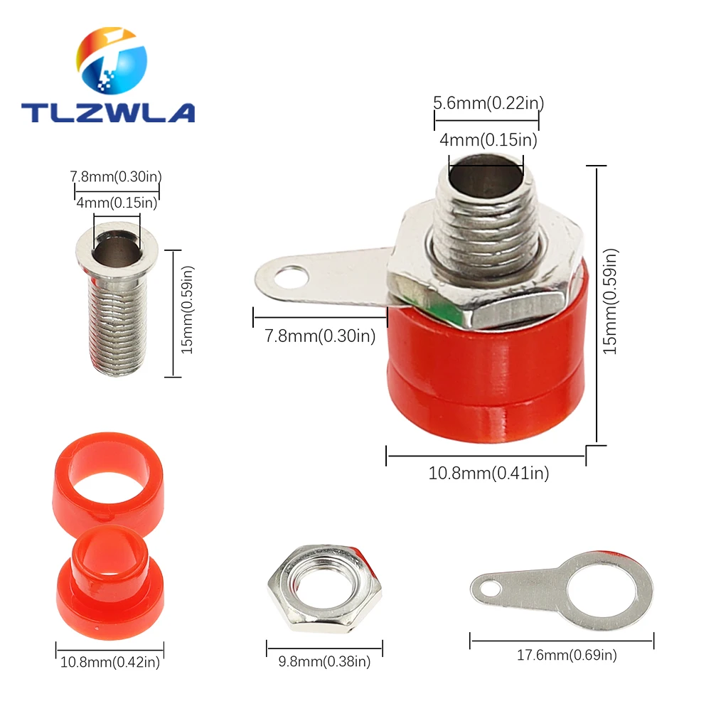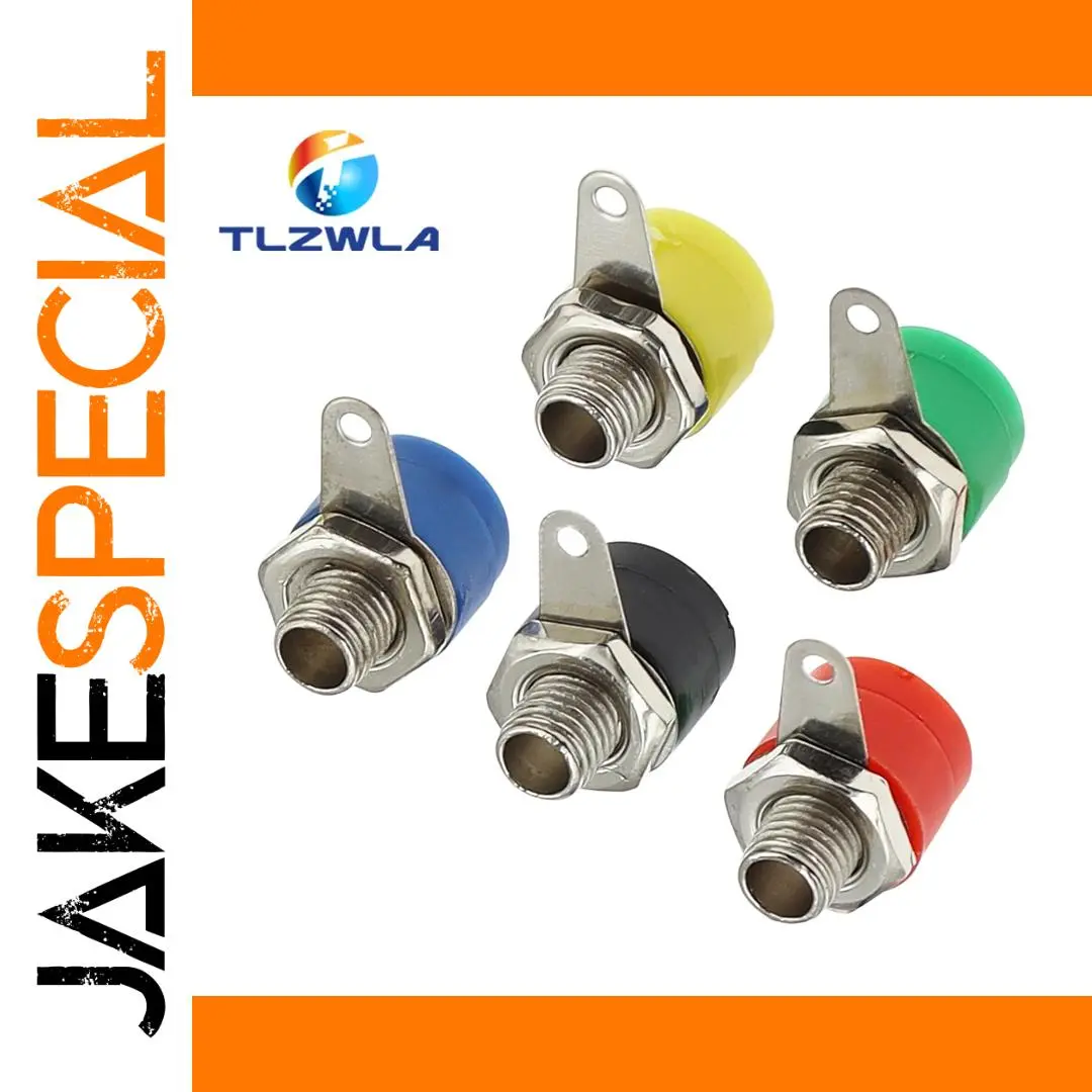 Enhance your electrical projects with this set of 10 high-quality 4mm banana binding post adapters, featuring durable, shiny metallic threaded posts with corrosion-resistant finish. Each adapter is paired with a vibrant, smooth, rounded plastic cap in red, green, yellow, black, and blue, making it easy to identify connections. Designed for DIY electrical setups, these adapters are compatible with 24V systems and are CE and RoHS certified for safety and reliability. Their sleek, minimalist design combines functionality with visual appeal, providing a professional look and ensuring secure, reliable connections for your electronic or electrical applications.