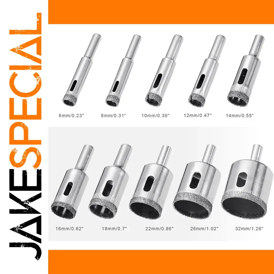 Enhance your DIY projects with this set of 10 diamond-coated HSS drill bits, featuring diameters from 6mm (0.23″) to 32mm (1.26″). Designed for use with power tools, these robust core drill bits excel at drilling through tiles, marble, glass, and ceramics, providing durable, precise cutting performance. The sleek silver finish combined with textured, diamond-coated cutting tips ensures efficiency and reliability in various applications, from woodworking to household repairs. Whether tackling small or large drilling tasks, this versatile set is your ideal companion for professional results and a seamless drilling experience.