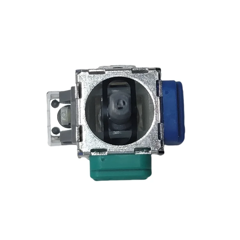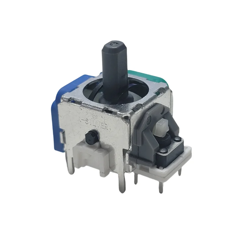 Enhance your gaming experience with this set of 10 electromagnetic TMR (Total Movement Range) analog thumbsticks, compatible with PS4 controllers. Featuring a sleek, metallic design with a shiny, polished finish, each joystick boasts a durable metal rectangular base and a comfortable, cylindrical gray thumbstick with a rounded top for precise 3D movement. The vivid color accents—bright blue and green on one set, white with black elements on the other—add visual interest and aid in easy identification. Using USB interface connections, these high-quality replacement parts are ideal for customization or repair, ensuring reliable performance and a professional look for your gaming setup.