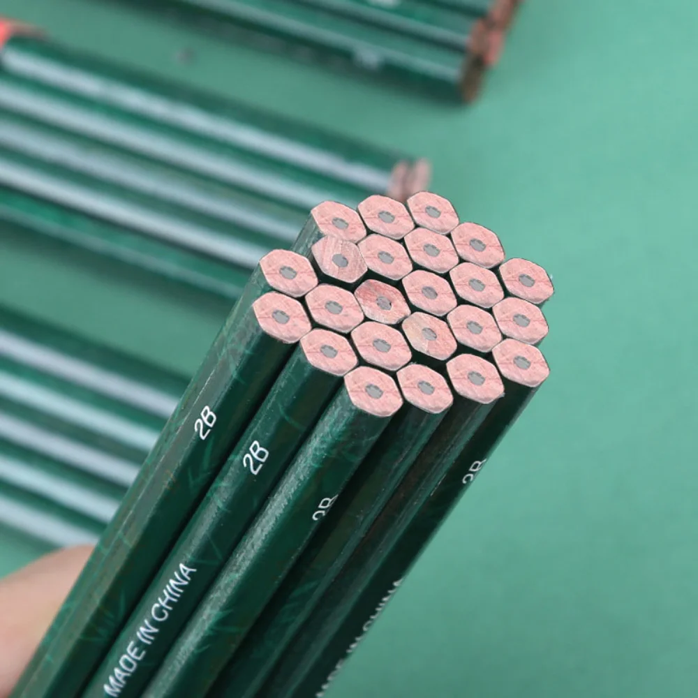 - Technical specifications include: hexagonal wooden body, black graphite lead with 2B hardness, 17.5 cm length, and environmentally friendly materials, safe for regular use in various environments.