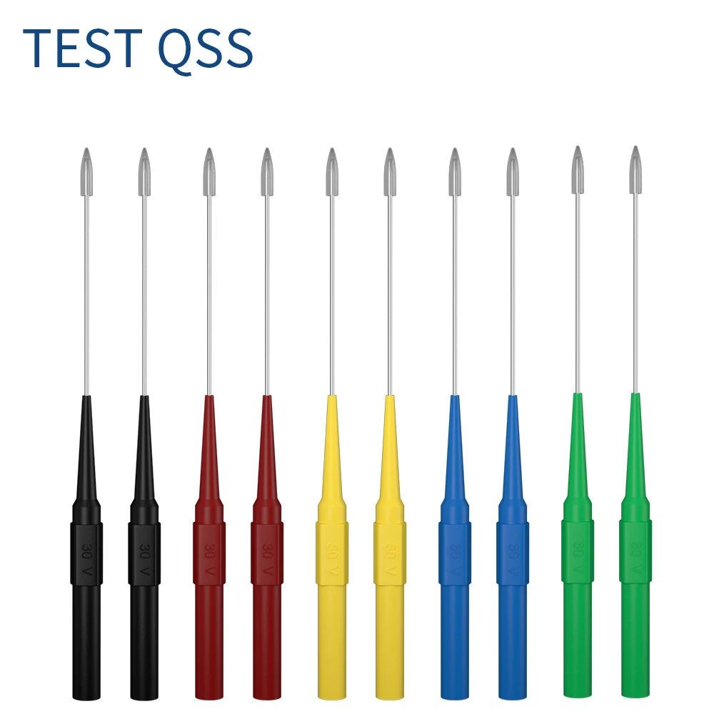 - Technical specifications include high-strength metal probes with fine tips, color-coded handles embossed with circuit ratings, and compatibility with standard multimeters and testers.