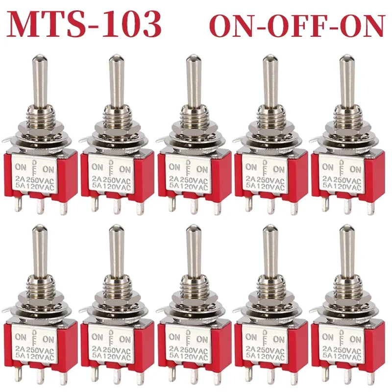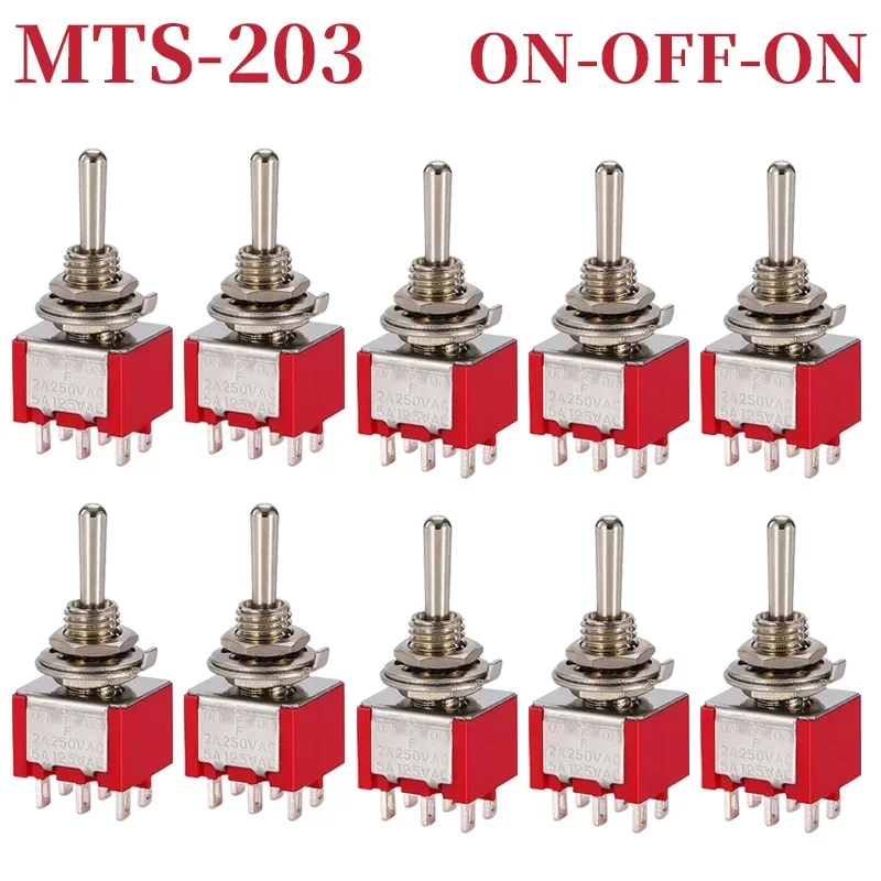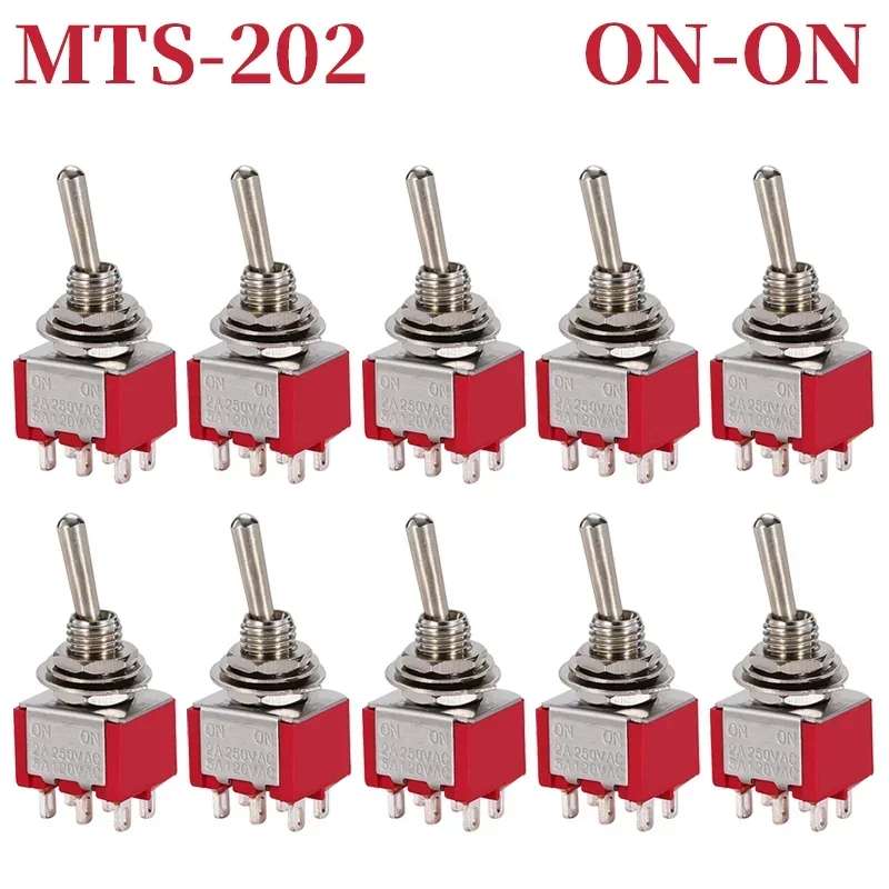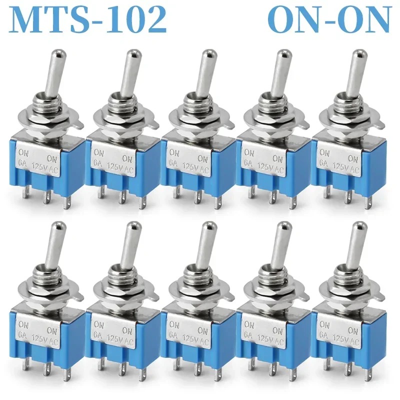- Includes 10 durable miniature toggle switches with models MTS-102, MTS-103, MTS-202, and MTS-203, suitable for versatile electrical or electronic applications requiring reliable switching solutions.