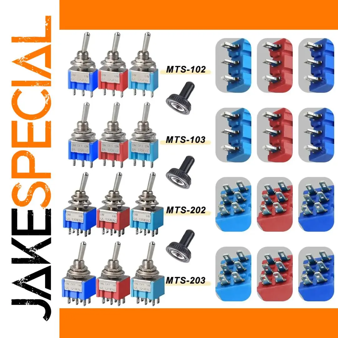 Experience the perfect blend of durability and vibrant design with this set of 10 premium mini toggle switches. Featuring models MTS-102, MTS-103, MTS-202, and MTS-203, these switches offer robust metal cylindrical housings and sleek, elongated levers that provide precise control in your electrical projects. The vivid color options—red, blue, dark blue, and baby blue—add a striking visual appeal while enhancing easy identification. Their waterproof caps ensure dependable operation in various environments, making them ideal for demanding applications. Whether for industrial, automotive, or DIY electronics, these switches are designed to deliver consistent performance, backed by high-quality materials and meticulous craftsmanship. Visualize your projects with the confidence of having professional-grade components that combine style and function seamlessly.