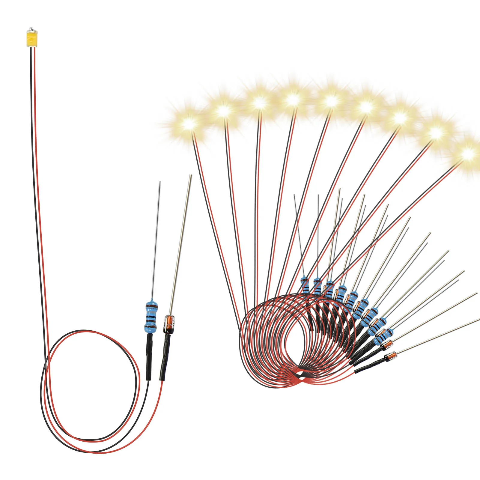 - Includes ten pre-wired SMD LEDs in three sizes: 0402, 0603, and 0805, each with approximately 50cm wires and compatible with various projects.