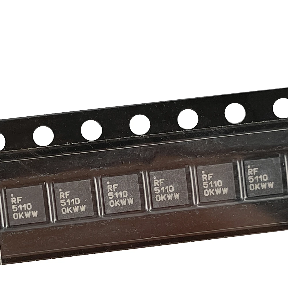 - Technical specifications include: RF5110GTR7 and RF5110GSR variants, operating voltage of 3V, QFN-16 package, high-frequency amplification suitable for GSM applications, and origin from the manufacturer with strict quality control.