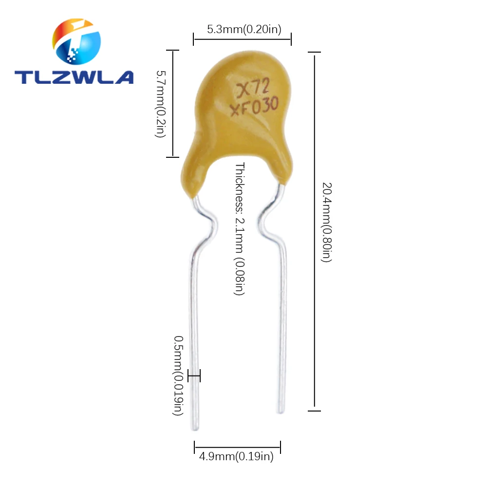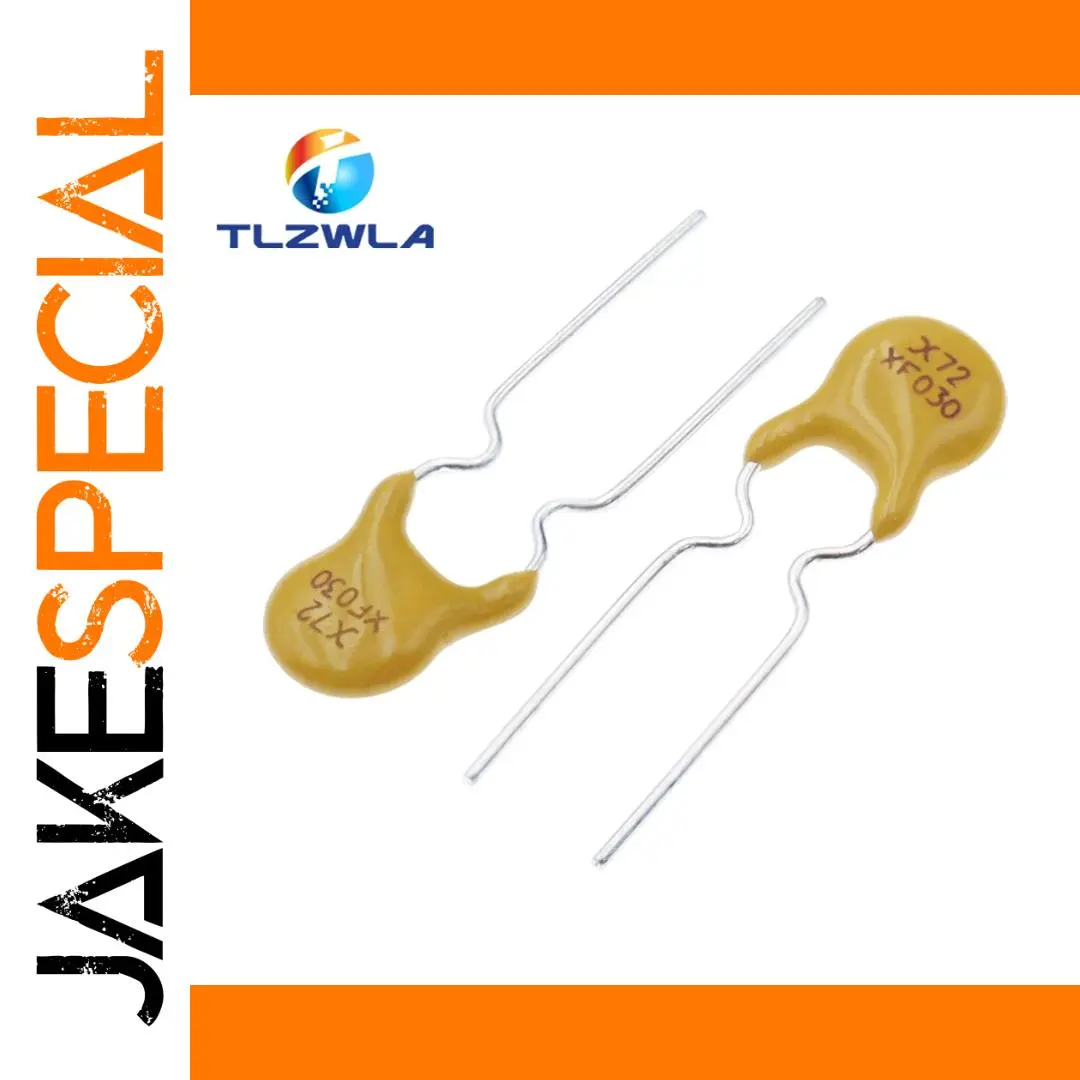 Imagine having a reliable protection system for your electronic circuits that automatically resets after faults. This set of ten self-recovery fuses, model RXEF030, combines safety, durability, and ease of use. Their vibrant yellow, rounded ceramic or plastic bodies make them highly visible and easy to identify in your projects. The sleek, oval shape with a slightly flattened profile ensures a streamlined look that fits seamlessly into your circuit design. Featuring dark red printed markings, these fuses display key specifications such as 72V and 0.3A, giving you quick reference points. With slender, shiny metal leads bent at approximately 90 degrees, installation becomes straightforward, providing effective circuit protection suited for various electronic applications. These fuses are your go-to component for ensuring safety and reliability.