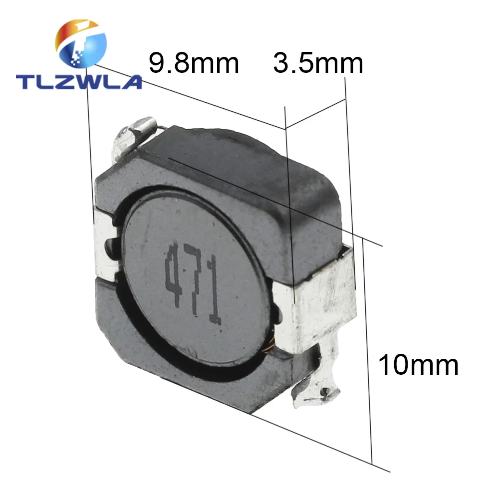Imagine enhancing your electronic projects with this premium set of 10 shielded SMD power inductors. Designed in a sleek, compact 10x10x4 mm format, these inductors feature a modern dark matte finish complemented by shiny metallic terminals. Their shielded casing ensures optimal performance by reducing electromagnetic interference, making them ideal for high-frequency and power applications. Each inductor's rounded top surface clearly displays its inductance value, allowing quick identification. Perfectly suited for custom electronic builds, these inductors will seamlessly integrate into your circuit boards. Their RoHS compliance guarantees eco-friendly, high-quality components that meet industry standards. Trust this product to provide reliable, durable inductance solutions tailored to your specific needs.