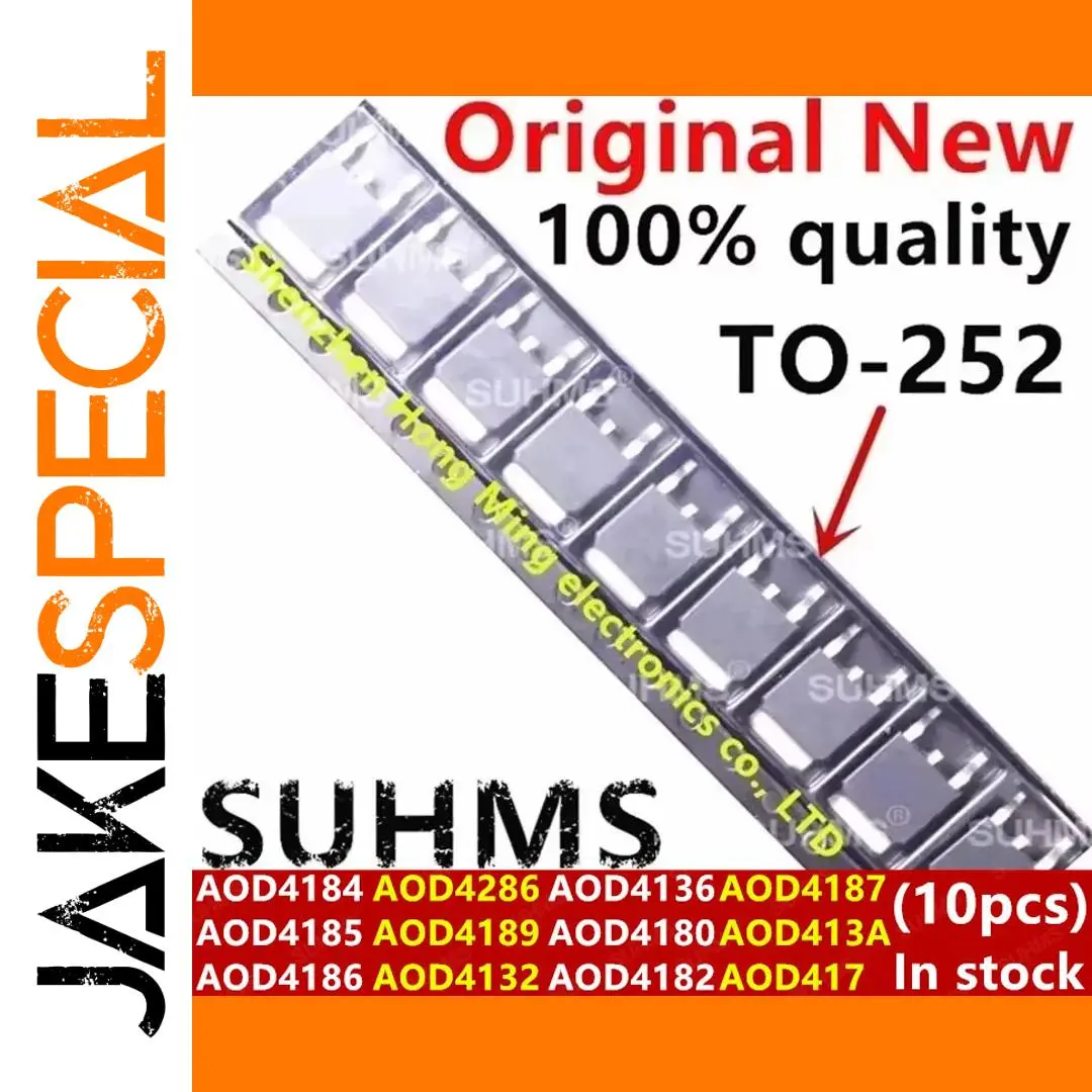 Transform your electronic projects with this high-quality set of 10 integrated circuits, expertly housed in transparent TO-252 packages. Designed for precision and versatility, these ICs operate within standard supply voltages and temperature ranges suitable for various computer applications. Their sleek, rectangular metallic bodies with reflective surfaces enhance their industrial aesthetic, while the small gaps between components ensure easy placement and soldering. The array features a variety of models, including AOD4184, AOD4185, AOD4186, AOD4286, and more, each identifiable by distinct color codes such as AOD413A, AOD4189, and AOD4182. Their durable construction and customizable options make them ideal for advanced electronic assemblies, offering reliable performance in demanding environments. Whether you're a professional or enthusiast, this set is perfect for your next tech upgrade.