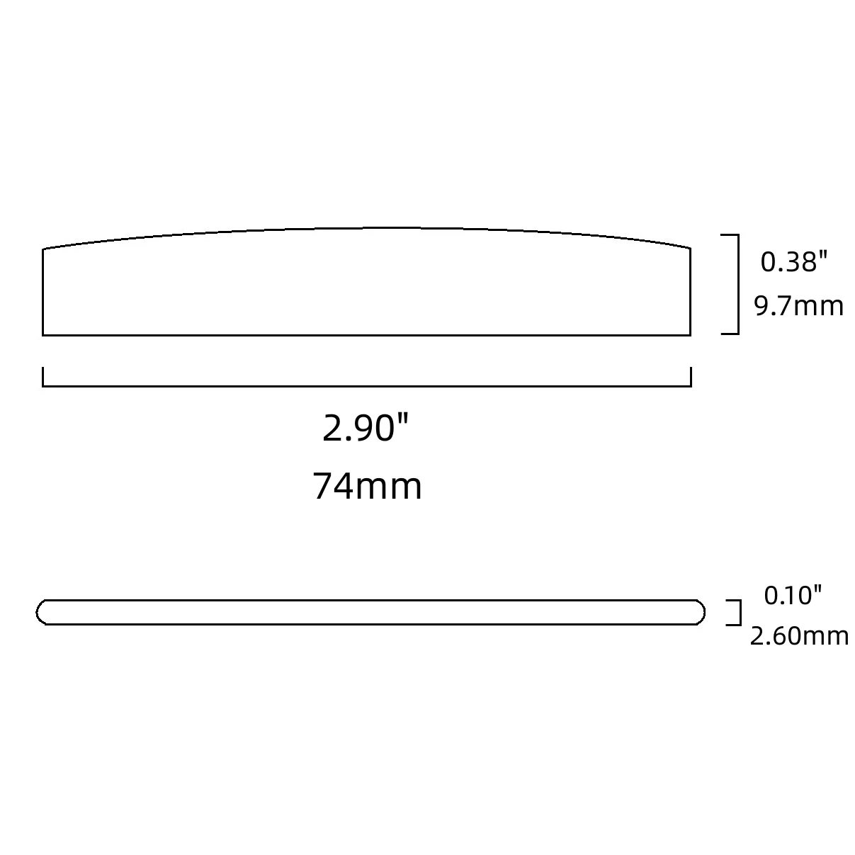 Enhance your Martin acoustic guitar with this set of 10 unbleached cow bone saddles, meticulously crafted for a natural and polished look. Each saddle measures 74mm (2.90″) in length, 2.6mm (0.10″) in thickness, and 9.6mm (0.38″) in height, perfectly designed as a bridge replacement for compatible models. The smooth, polished surface highlights the organic beauty of the unbleached bone, delivering a sleek and unobtrusive aesthetic that complements the guitar’s natural tone and style. Trusted by luthiers and enthusiasts alike, these saddles offer a combination of durability, simplicity, and understated elegance.