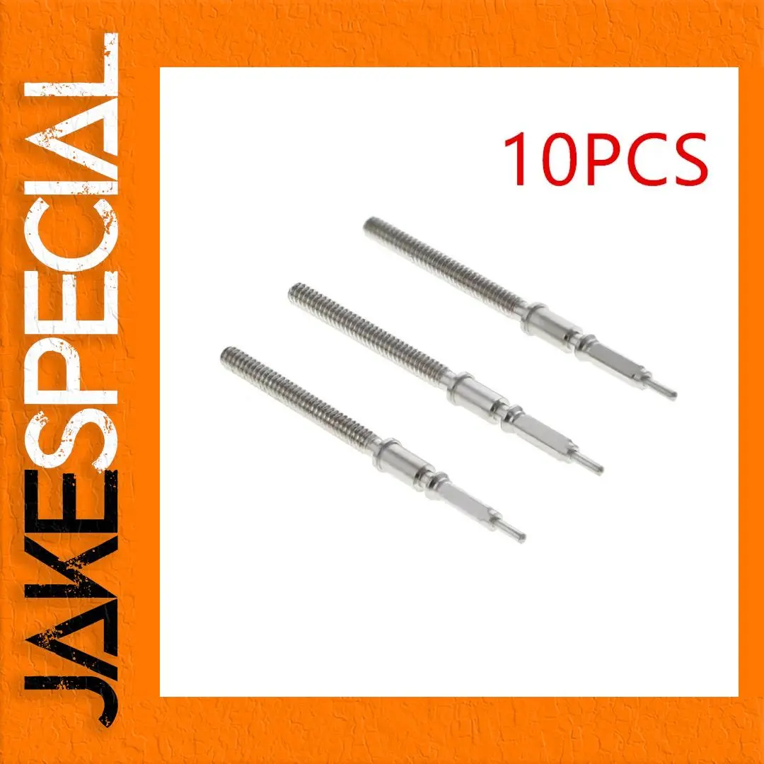 Enhance your watch repair toolkit with this set of 10 metal watch winding stems, specifically designed as replacement parts for ETA watch movements 2824-2, 2834-2, and 2836-2. Each stem features a polished silver finish, reflecting light and adding a sleek touch to your tools. Weighing just 5 grams, these cylindrical stems come with spiral threads for improved grip and functionality. The tapered ends ensure a perfect fit into crown mechanisms, making installation seamless. Ideal for any watch repair enthusiast, these stems will help you maintain the precision and integrity of your timepieces.