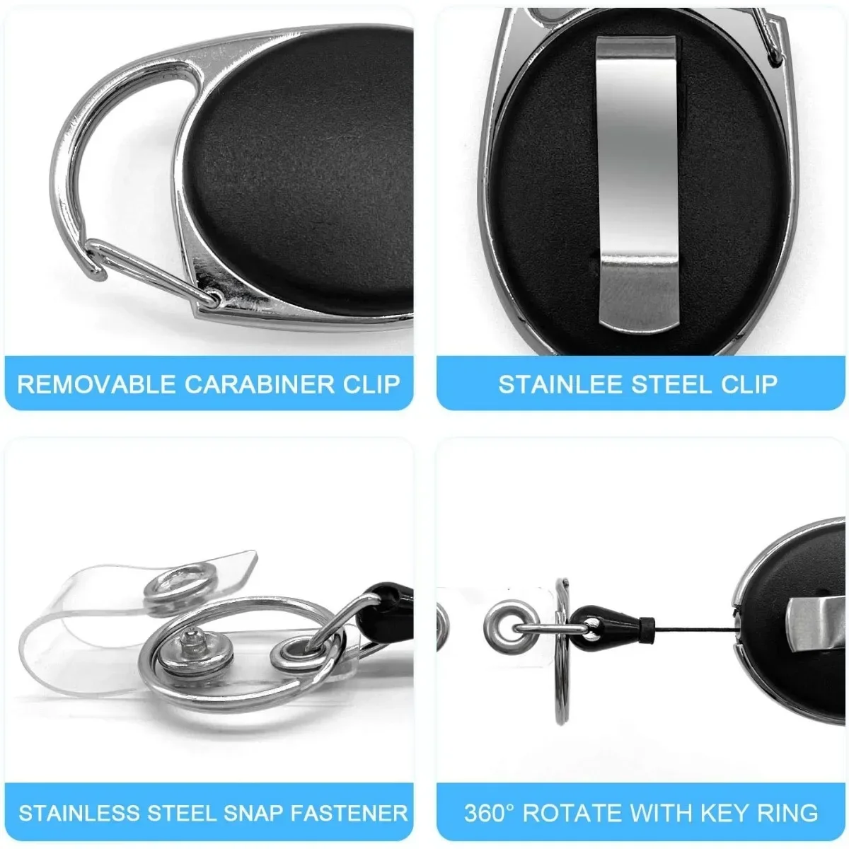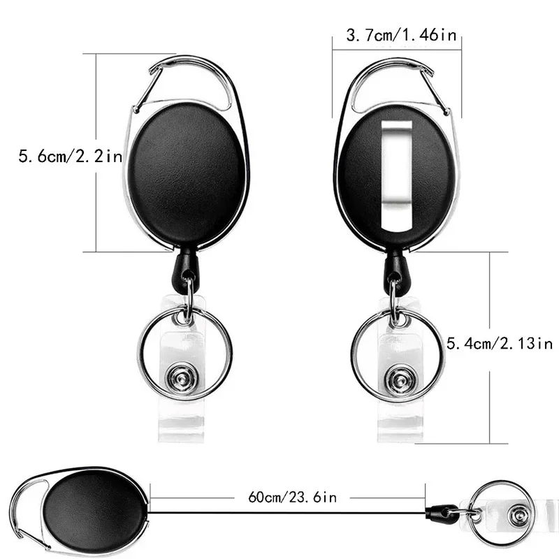 - Each reel extends up to 23.6″ (60 cm) on a smooth polyester cord, allowing flexible access to ID cards, keys, and small tools like scissors, flashlights, or screwdrivers.