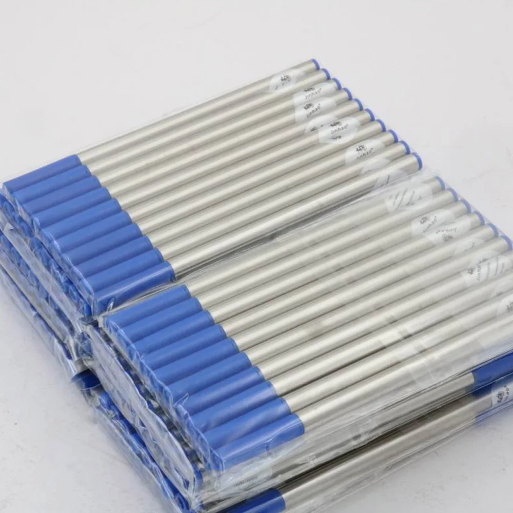 Experience seamless writing with this set of 100 high-quality blue rollerball pen refills, designed to elevate your everyday tasks. Crafted with a sleek, metallic body and a vibrant blue cap, each refill features a 0.5mm gel ink nib that delivers smooth, consistent lines. Perfect for professionals, students, and anyone who values precision and reliability, these refills offer a universal fit compatible with standard rollerball pens. Their elegant design ensures a modern look while providing durability and ease of use. Keeping multiple refills on hand means you're always prepared for meetings, note-taking, or creative writing, making your workflow more efficient and enjoyable. Enjoy the blend of style, functionality, and convenience with these premium pen refills.