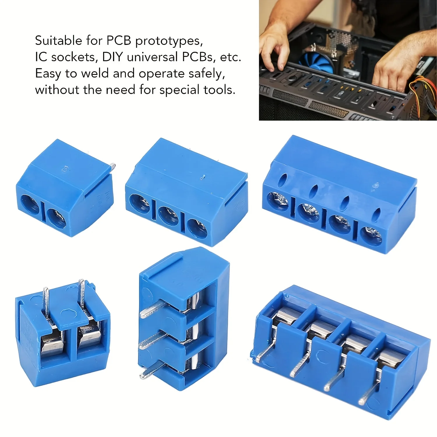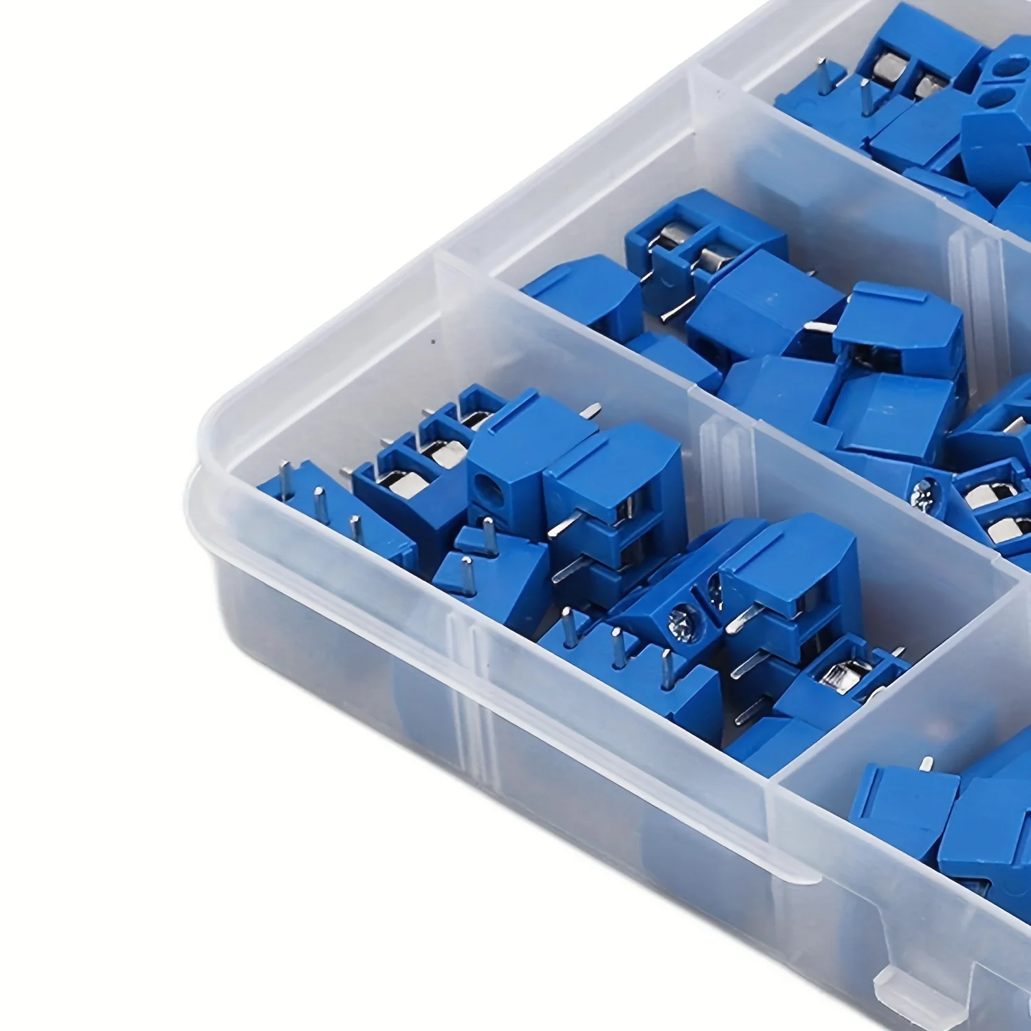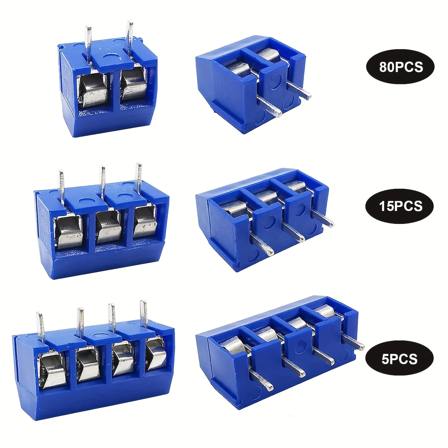 - Includes 100 high-quality blue plastic terminal blocks designed for PCB mounting, with 2, 3, or 4 pins for flexible electrical connection options.