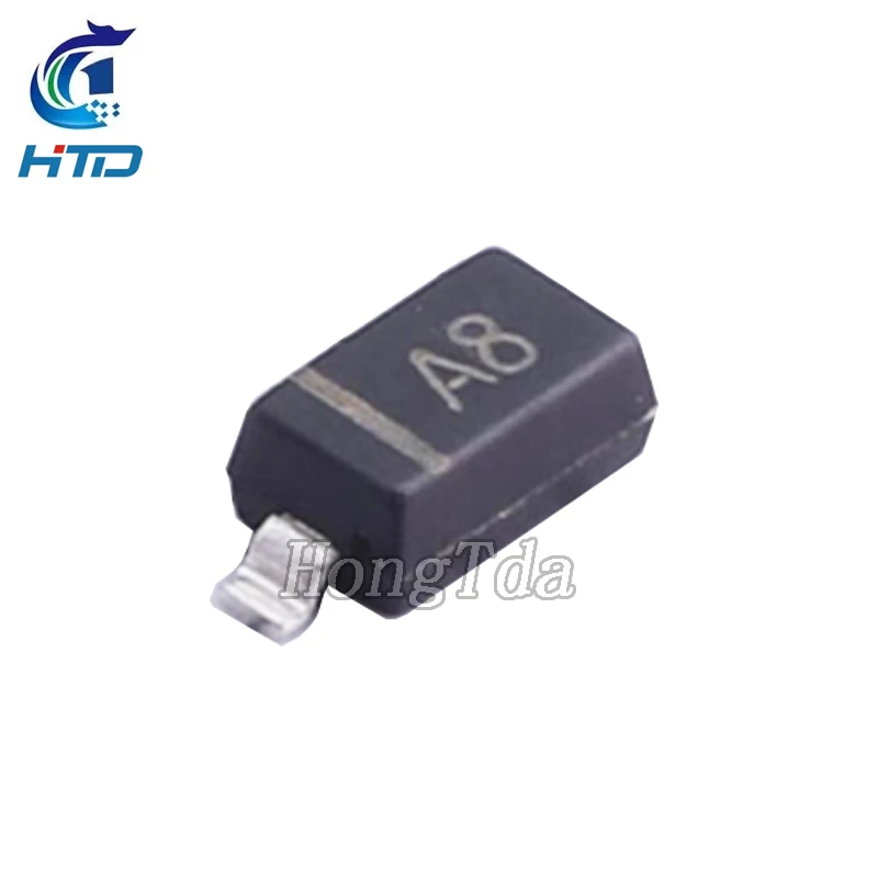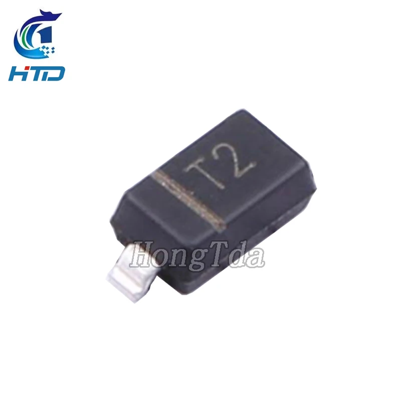 Experience reliable performance with this high-quality set of 100 surface-mount switching diodes. Crafted for precision and durability, these diodes feature a sleek, rectangular design with a matte black finish that exudes a professional aesthetic. The small metallic leads extending from each diode are bent downward, making installation straightforward and secure. White printed markings on the black surface provide clear, sharp identification for easy recognition and placement. These diodes are housed within a flexible black tape reel, with transparent pockets molded to each component, ensuring safe handling and efficient automated placement. Ideal for a range of electronic projects, their robust construction guarantees consistent, high-performance operation in various electrical applications.