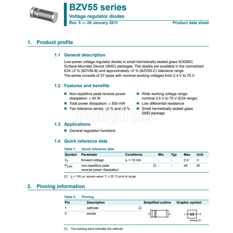 - Technical specifications include low reverse current of 100nA, high stability, and compatibility with a wide range of electronic devices and circuits.
