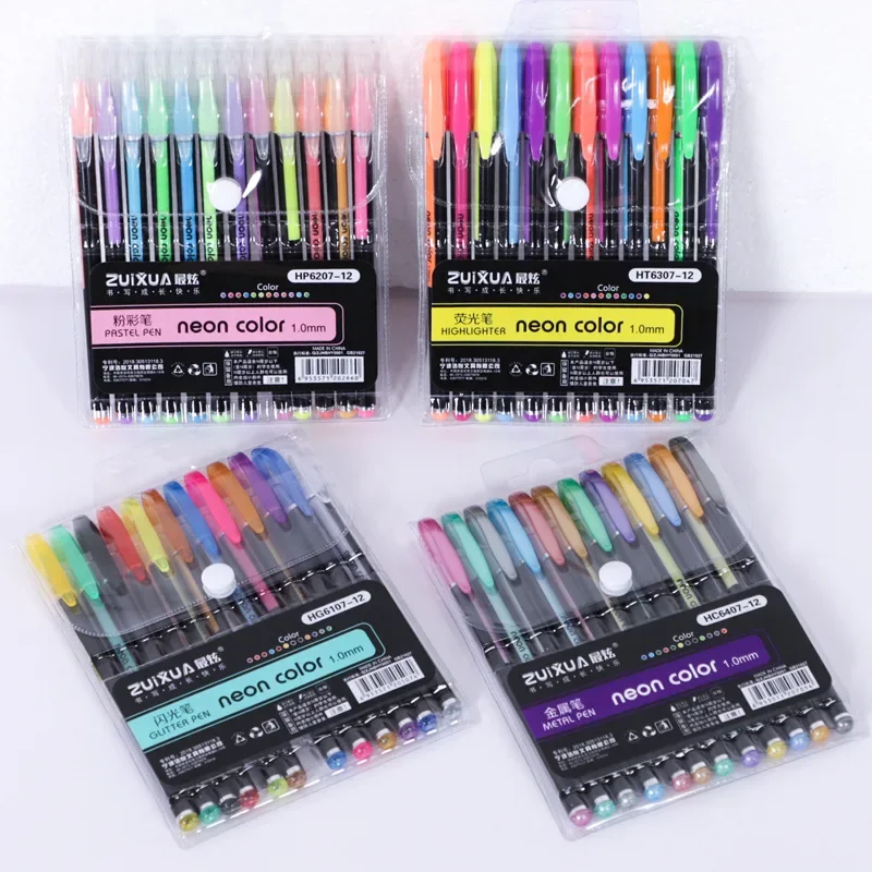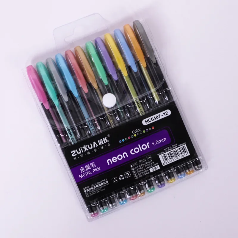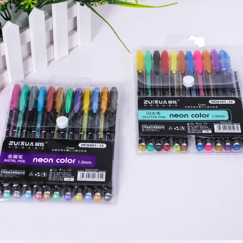 Set of 12 Metallic Glitter Gel Pens