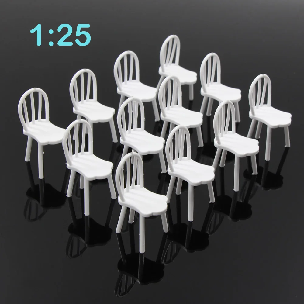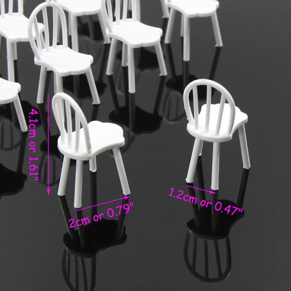 - Set includes 12 miniature white plastic chairs, perfect for G scale 1:25 scenes, adding a modern decorative touch to your miniature model or diorama landscape.