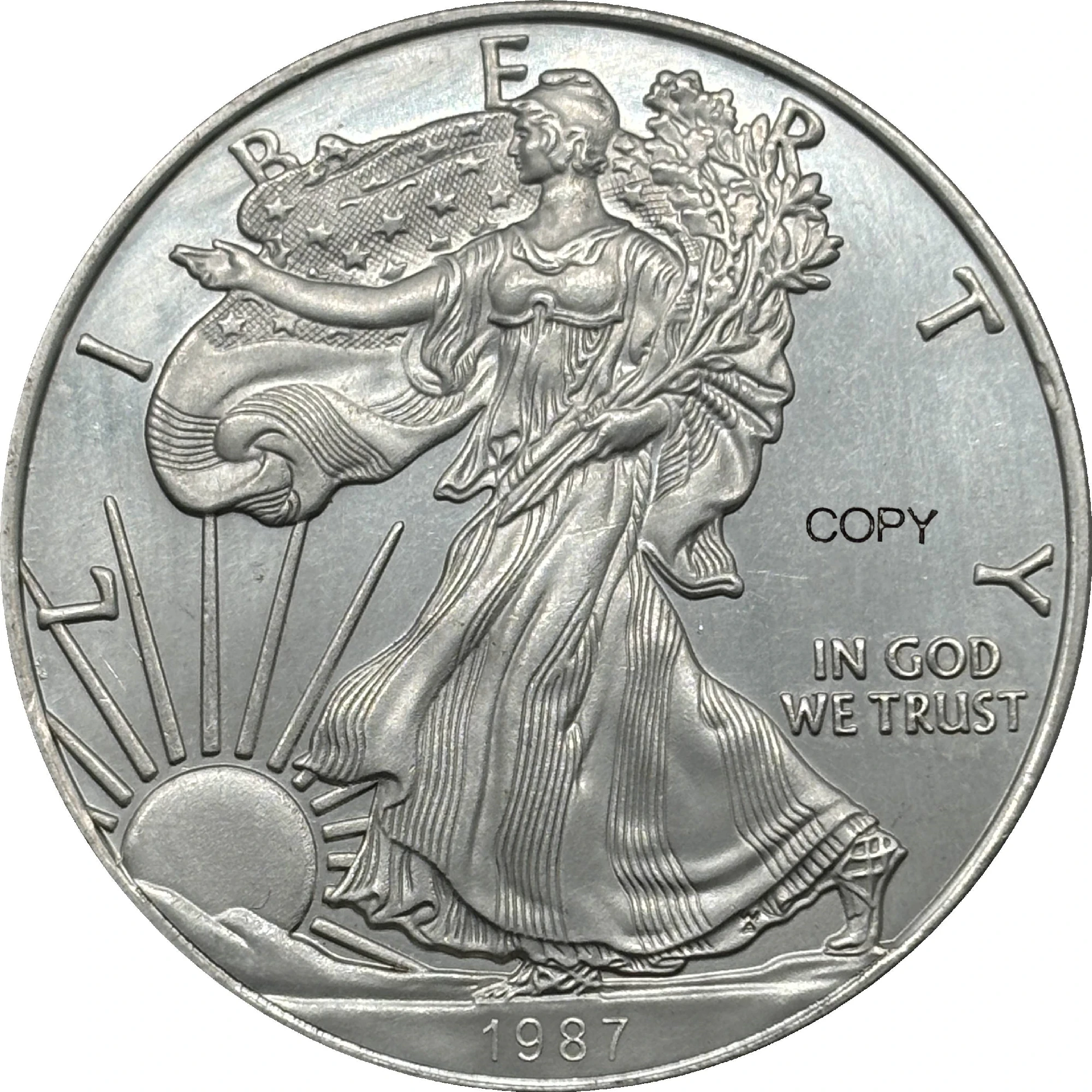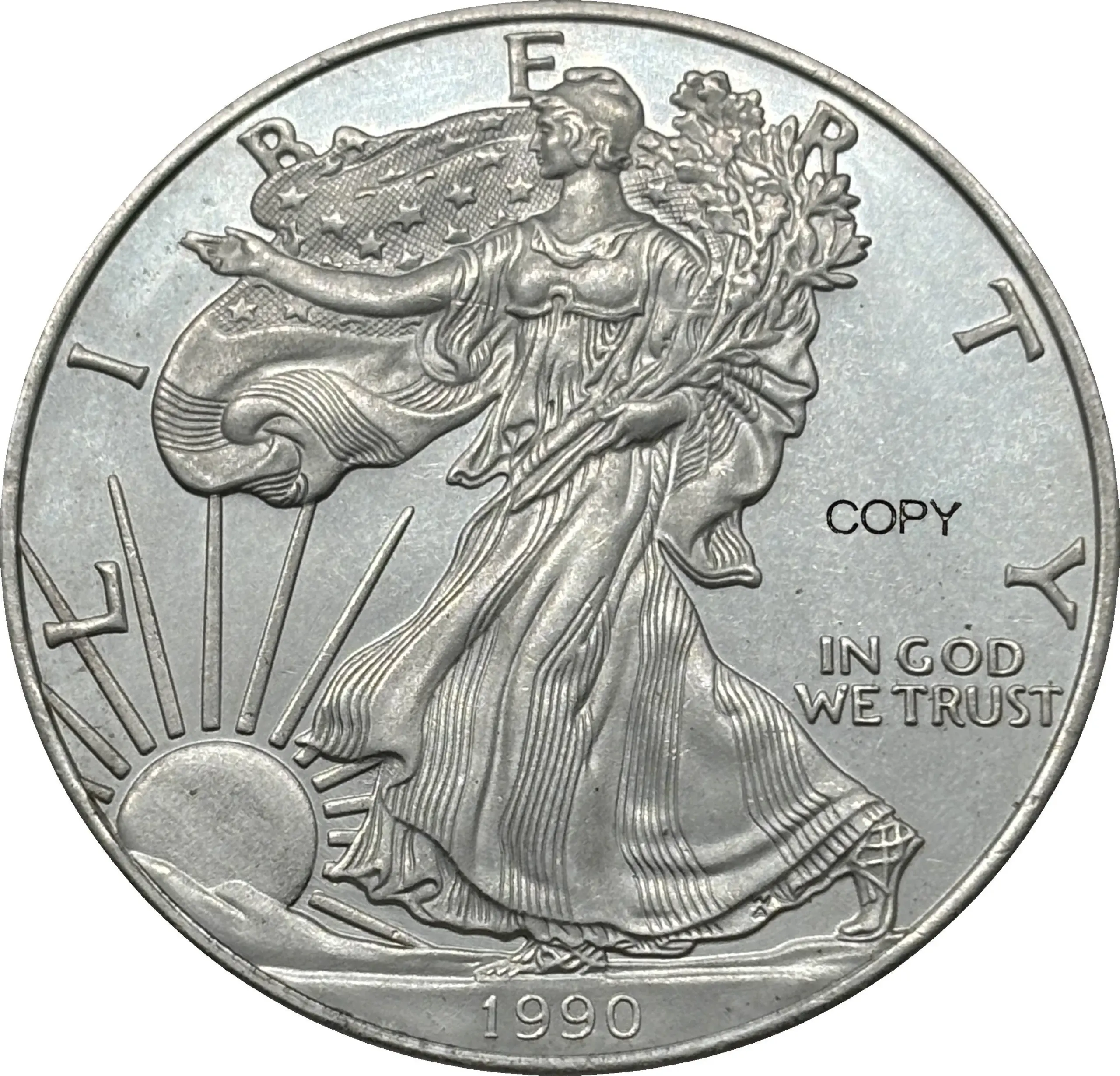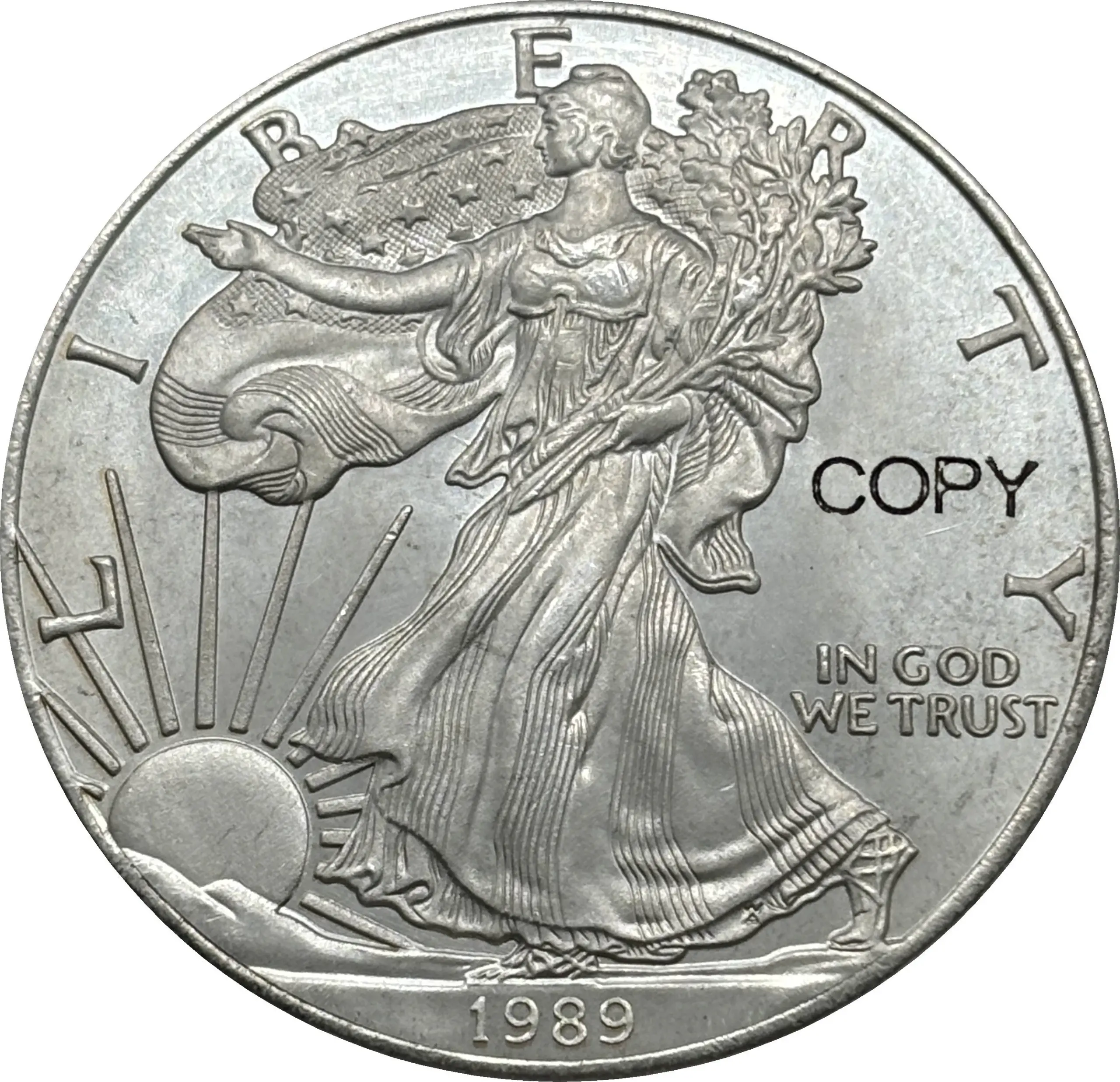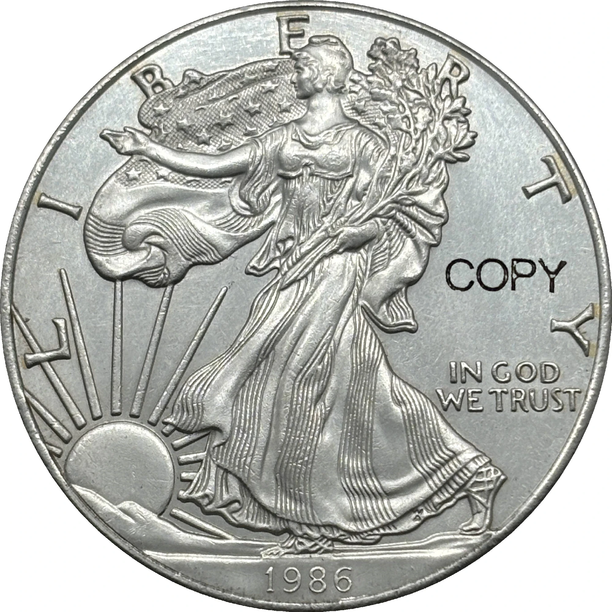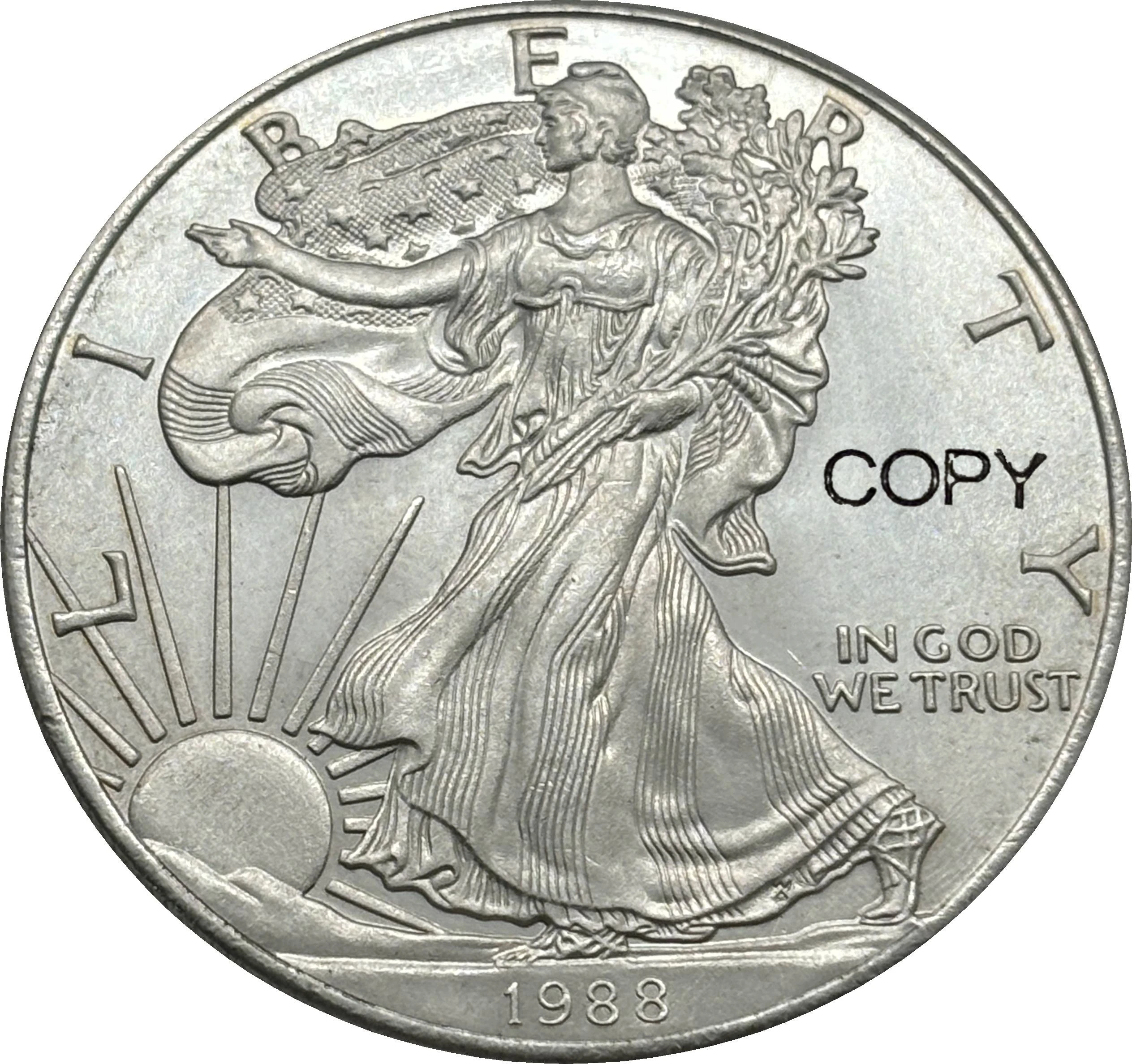Imagine owning a stunning collection of vintage-style replica coins that authentically capture the historic elegance of the Liberty Eagle design. Crafted with precision, these coins feature a detailed relief of an eagle clutching an olive branch and arrows, emphasizing American symbolism and craftsmanship. Each coin measures approximately 38.1mm in diameter, with a thickness of 2.15mm, and weighs around 24 grams. The surface displays a slightly reflective metallic finish, ranging from shiny silver to darker antiqued tones for a genuine vintage aesthetic. The textured rim with ridges adds a classic touch, making these pieces perfect for display, collection, or gifting. Their intricate design highlights high craftsmanship and timeless appeal.