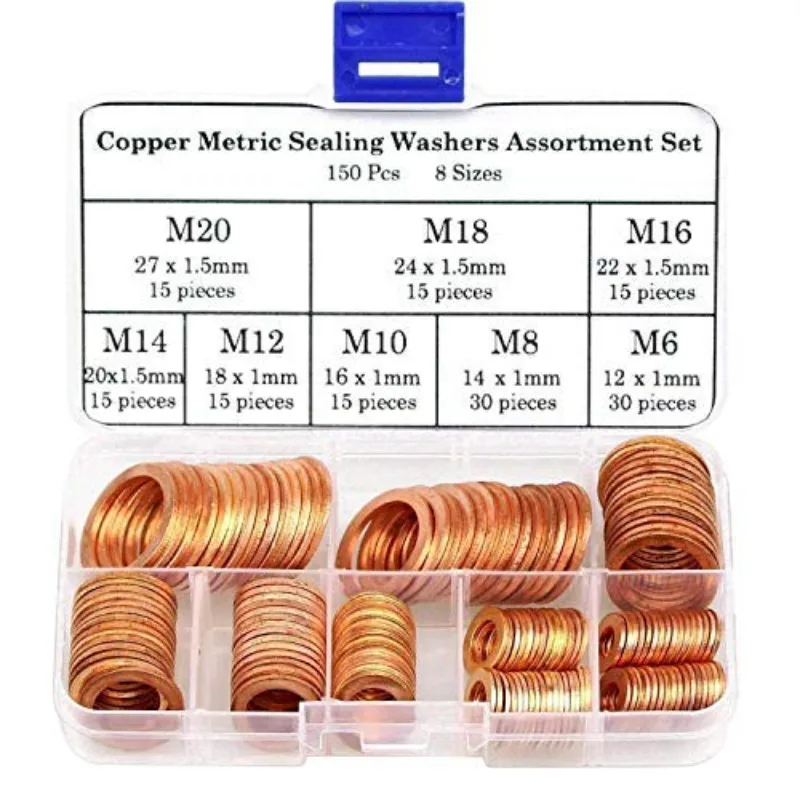 - Contains 150 high-quality copper washers across 8 sizes for versatile sealing and fitting needs.