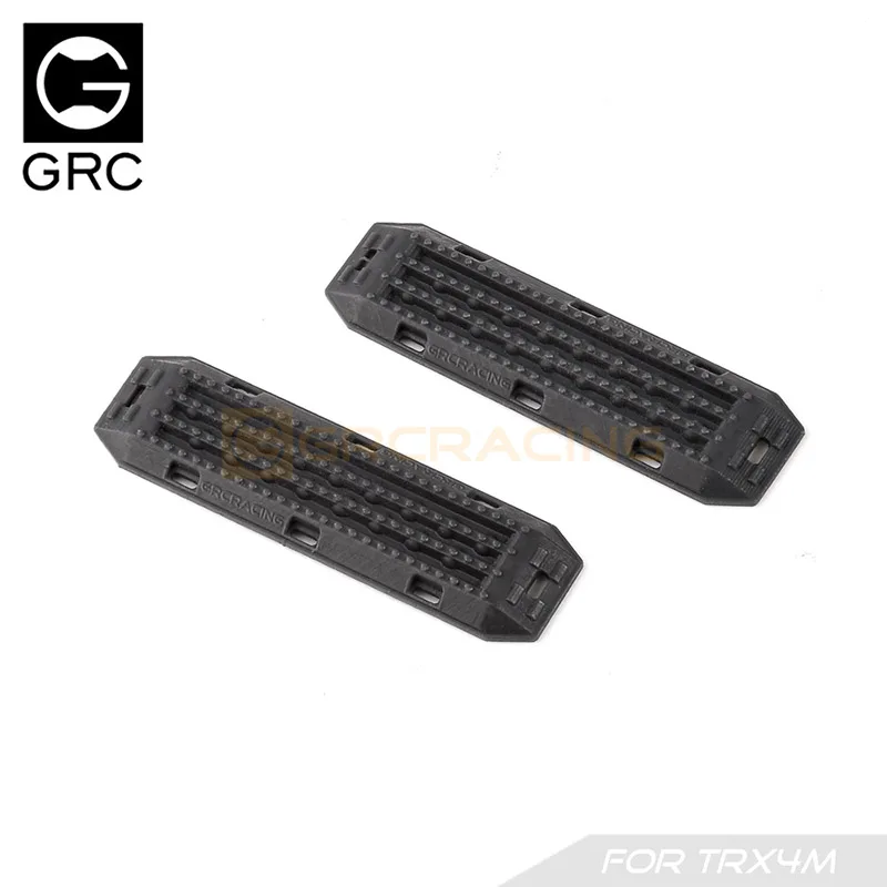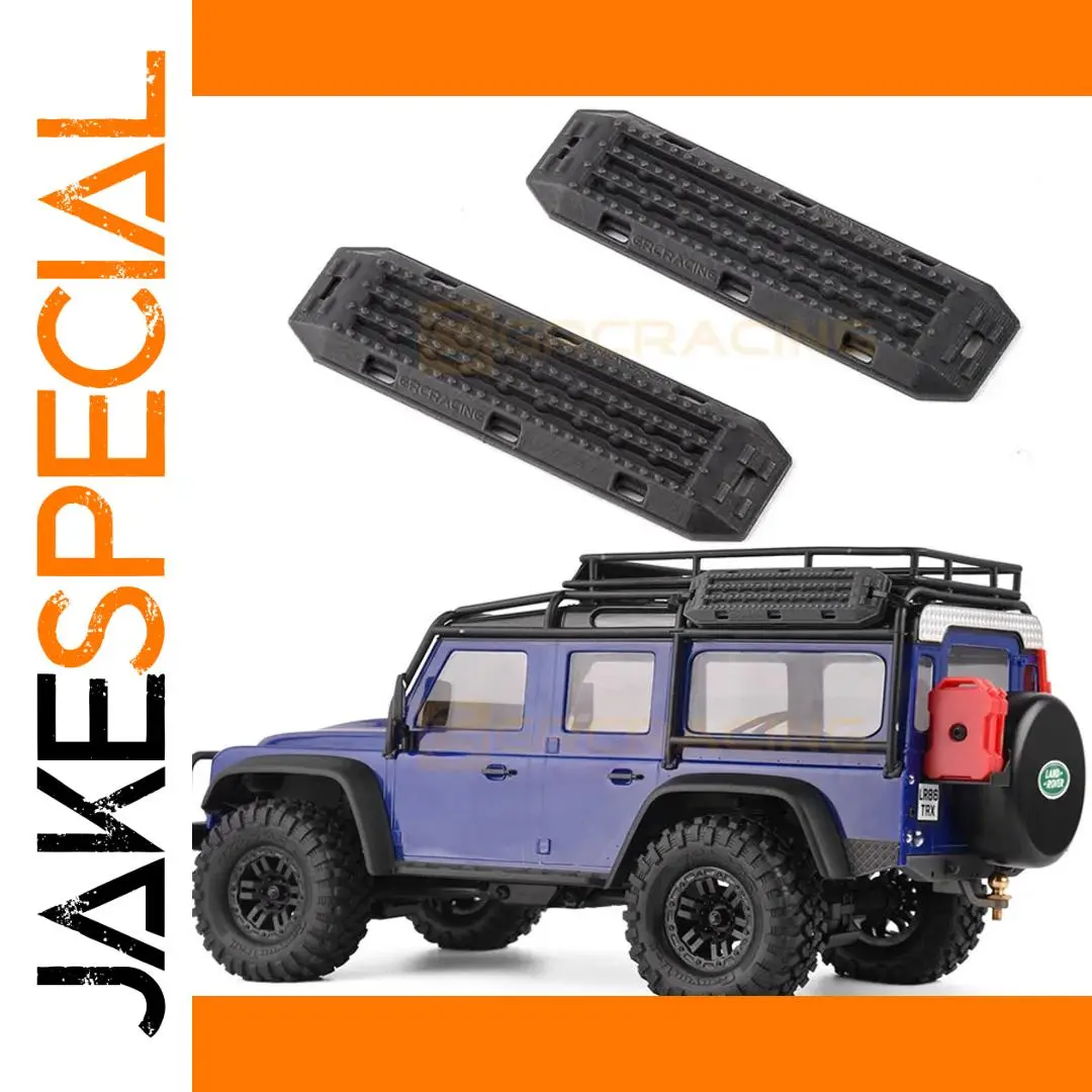 Enhance your 1/18 scale RC crawler with this set of two black simulated escape boards, crafted from durable plastic. Designed for compatibility with models like Traxxas TRX4M and TRX-4M Bronco, these non-electric upgrade parts feature a textured surface with parallel ridges, beveled edges, and subtle embossed branding for a realistic, rugged appearance. Easy to install with screws, they are perfect for four-wheel drive RC cars and ideal for hobbyists aged 14 and above looking to add functional detail and adventure-ready style to their vehicle’s chassis and frame.