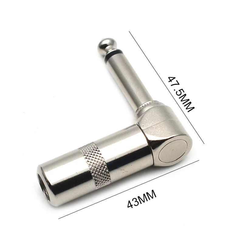 Transform your audio setup with this set of 2 straight guitar cable connectors. Designed for amplifiers and microphones, these 6.35 mm (1/4 inch) connectors feature a sleek chrome finish that not only provides a polished look but also ensures durability. The 90-degree angle design allows for easier access in tight spaces, making connectivity seamless. The quality metal construction is complemented by knurled grip areas that provide secure handling. Visualize the sound clarity and reliability this high-quality connection will bring to your music. With these connectors, you're set to enhance your audio experience whether you're in a studio or on stage.