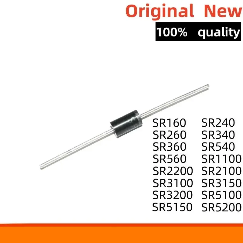 Transform your electronic projects or repair jobs with this set of 20 high-quality rectifier diodes. Featuring models like SR160, SR240, SR260, SR340, SR360, SR540, SR560, SR1100, SR2100, SR2200, SR3100, SR3150, SR3200, SR5100, SR5150, and SR5200, these diodes offer exceptional durability and performance. Their sleek, cylindrical black bodies with a glossy finish provide a modern look, while the long, straight metal leads ensure easy installation. Designed for high-reliability applications, each diode operates at a voltage of 3V with standard maximum reverse current, forward voltage, and reverse voltage ratings. This set is ideal for professionals and enthusiasts seeking long-lasting, dependable components for various electronic circuits, guaranteeing optimal performance in demanding environments.