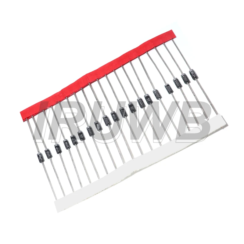 This set of 20 high-quality rectifier diodes features models such as MUR460R, housed in DO-201 packages with a rated voltage of 9V. Designed for reliable electrical conduction, they offer high stability, excellent self-healing performance, and support standard maximum forward current and reverse voltage levels. These durable diodes are ideal for a wide range of electronic applications, providing consistent and long-lasting rectification performance. Their sleek, black cylindrical bodies with precise white markings, paired with shiny silver leads, ensure a professional and organized appearance. Perfect for electronics enthusiasts seeking dependable components for their projects.