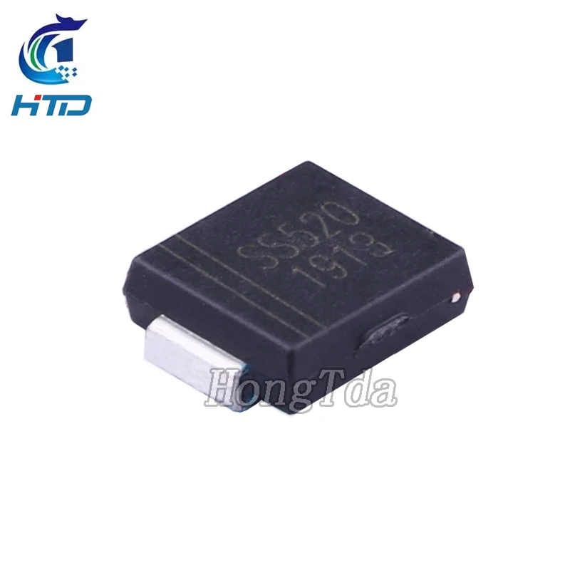 Experience reliable power management with this set of 20 surface-mount Schottky rectifier diodes, including models SS34, SS36, SS310, SS315, SS3150, SS320, SS52, SS54, SS56, SS510, SS515, SS5150, and SS520. Crafted with a sleek, rectangular metallic body finished in matte black, these diodes offer a modern, minimalist aesthetic. The white markings clearly display the model number “SS510,” providing quick identification. A silver metallic terminal extends from the side, ensuring seamless surface mounting onto circuit boards. The design features subtle shallow indentation lines along the length of each diode, adding a geometric detail while maintaining a clean profile. These diodes are built for high-speed switching, low forward voltage drop, and high current applications, making them essential components for your electronic needs. Trust in their durability and precision for optimal performance.