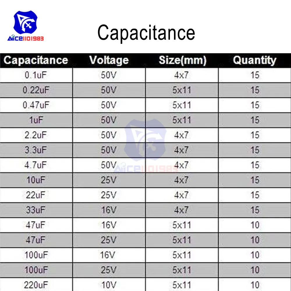 - Includes 200 surface-mount aluminum electrolytic capacitors with a variety of capacitance values from 0.1μF to 220μF for diverse circuit needs.