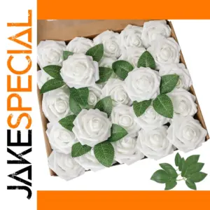 Experience the timeless beauty of this set of 25 artificial white roses, perfect for elevating any event or home decor. Crafted with foam flower heads and realistic green leaves, these roses mimic the delicate appearance of real blooms. The varied sizes and shapes of each rose add natural charm and authenticity. Use them to create stunning DIY wedding bouquets, elegant centerpieces, or charming decor accents for birthdays, anniversaries, or housewarming parties. Their dense arrangement and vibrant greenery bring a fresh, refined vibe to your space. Designed for indoor use, these flowers are chemical-free and safe for all your creative projects, making your special occasions truly memorable. Enjoy their lasting beauty and easy customization.