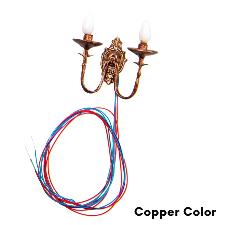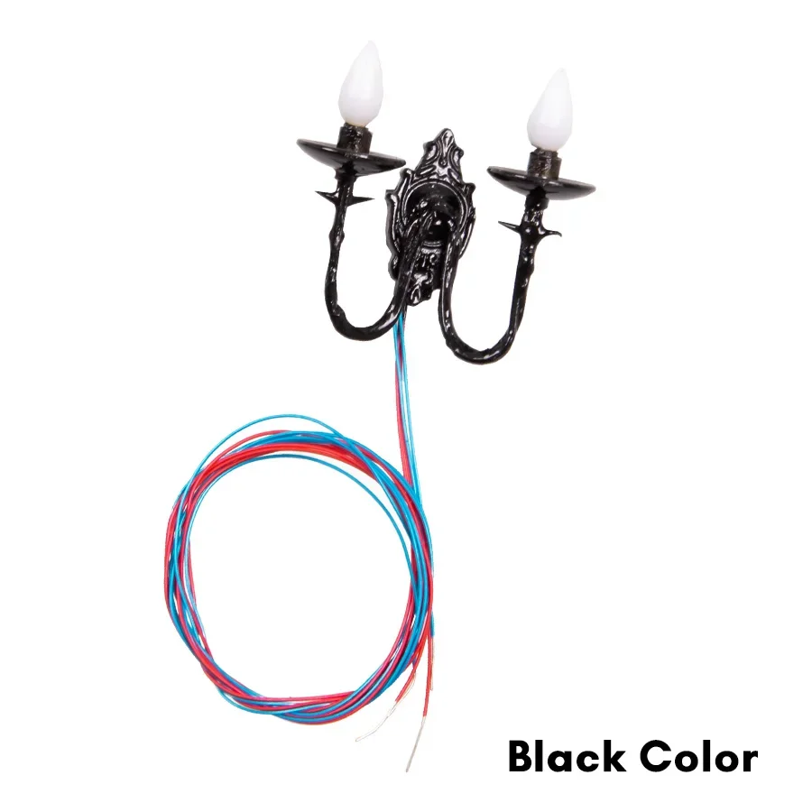Transform your miniature settings with this set of 3 exquisite wall lamps, featuring distinct colors: bronze (gutong), gold (jin), black (hei), and vibrant green (lv). Each lamp boasts a classic chandelier design with intricate details and candle-like bulbs, enhancing the aesthetic appeal of your garden, yard, or dollhouse. Powered by a 3V source, these lightweight plastic lamps are designed for easy integration into your DIY model making. Model number BD-11 ensures a perfect fit for various dioramas, bringing your imaginative creations to life in a stunning way. Enjoy the charm and elegance these lamps add to your decor!