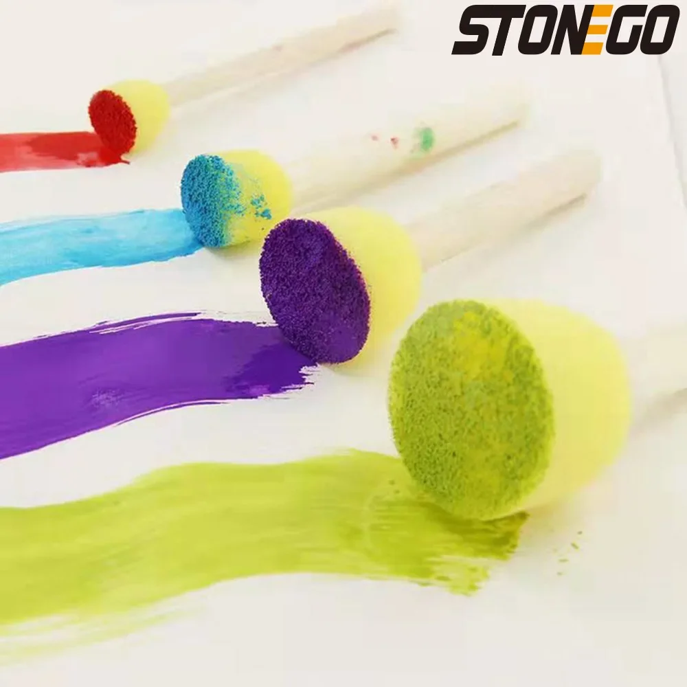 Keys features of the set of wooden handle sponge paint brushes
