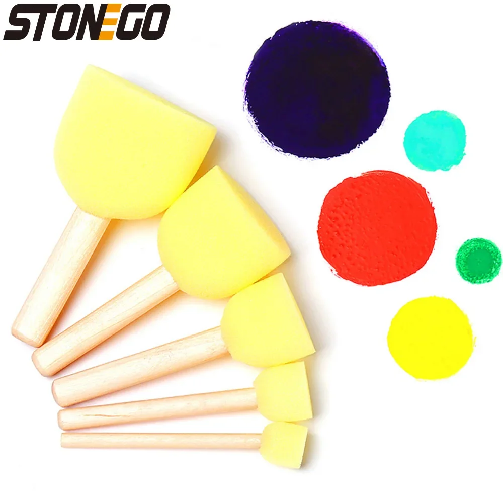 This set of wooden handle sponge paint brushes