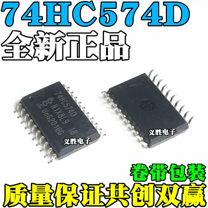 - Set of 5 original 74HC574D integrated circuit chips, each built in SOP-20 package, ideal for various switching and logic applications.