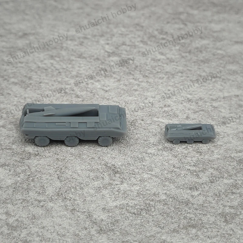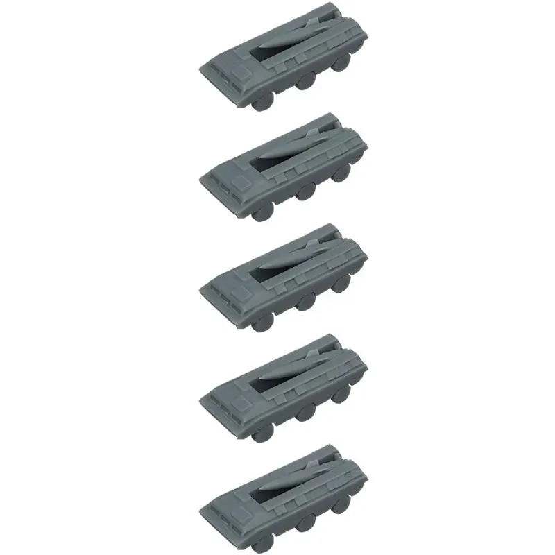 Experience the thrill of owning highly detailed military diorama pieces with this set of 5 resin 9K79 Tochka tactical ballistic missile launch vehicles. Crafted with precision using advanced 3D printing techniques, these models showcase sleek, monochromatic gray surfaces, accentuated by intricate molded details such as grooves, panels, and structural lines. Available in two scales—1/700 (1.45cm) length) and 1/350 (2.89cm)—they enable you to customize your display environment accurately. Their compact, angular design embodies a utilitarian military aesthetic, perfect for collectors seeking realism and technical excellence. These models can be effortlessly integrated into dioramas or display cases, providing an authentic military touch to your collection. Handle with care, as their fragile resin composition requires delicate treatment.