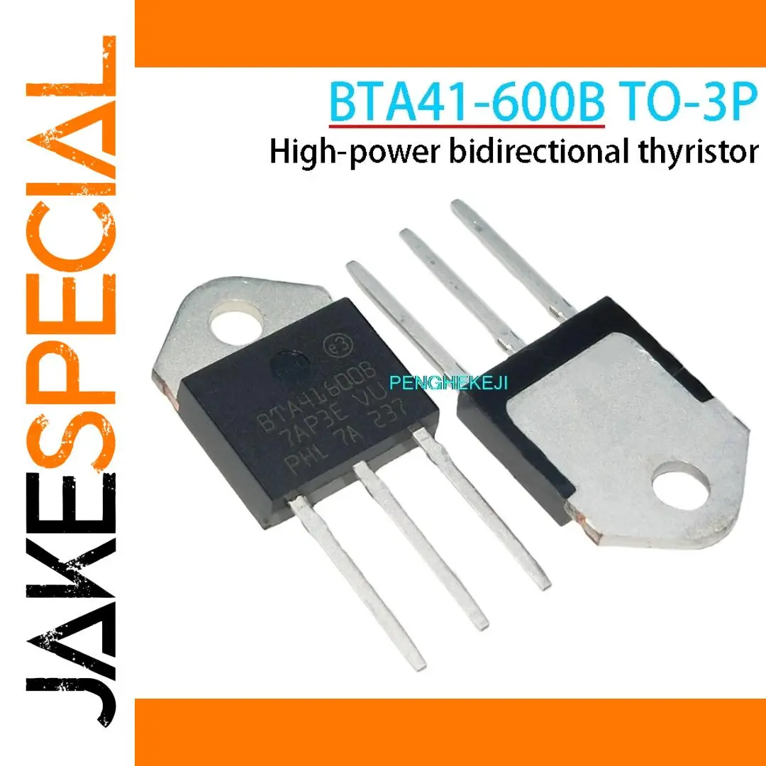 Elevate your high-power switching applications with this set of five brand-new BTA41-600B bidirectional thyristors, each housed in a durable TO-3P package. Designed for robust performance, these thyristors feature a sleek rectangular black plastic body with white or silver markings for easy identification. Each component includes a large, circular metal mounting hole for secure installation and shiny metallic terminal leads arranged in parallel for efficient circuit integration. They operate within standard supply voltage and dissipation parameters, ensuring reliable functionality in demanding environments. Ideal for high-power electronic projects, these thyristors combine sturdy design with precise technical specifications, making them a trustworthy choice for your advanced switching needs.