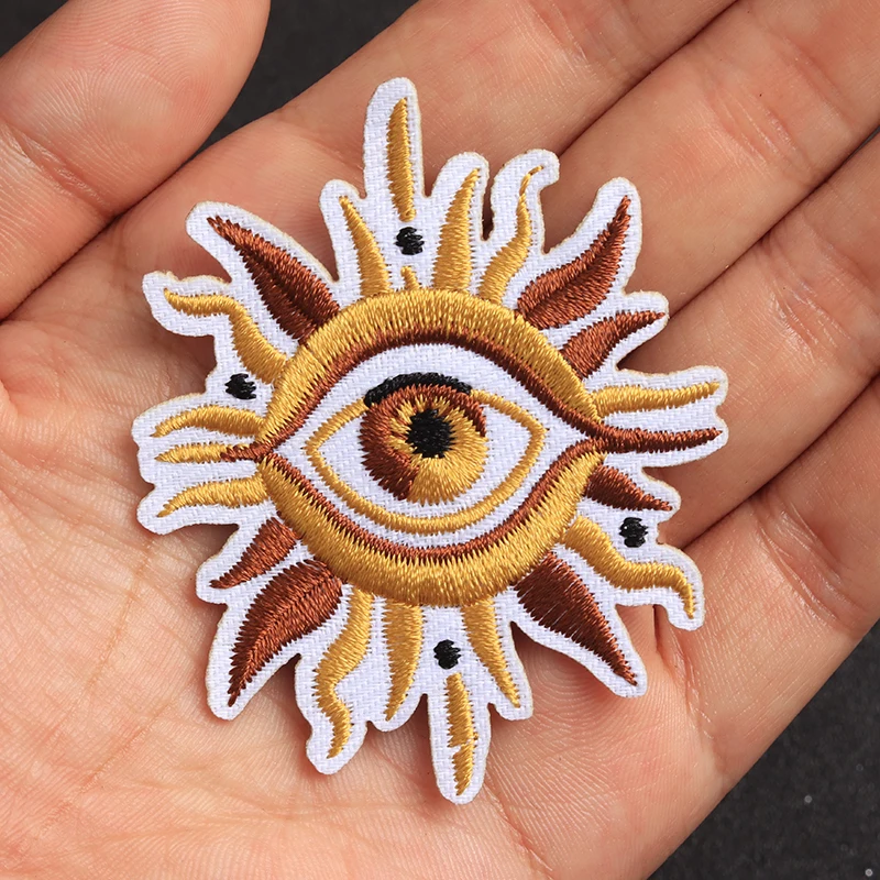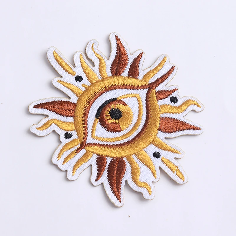 Brighten up your wardrobe and DIY projects with this set of 5 cartoon sun patches, each measuring approximately 6.5 x 5.2 cm. Crafted from a durable non-woven fabric, these patches feature a delightfully whimsical design of a stylized sun with a captivating eye, surrounded by rays of vibrant yellow and brown. The intricate embroidery adds a tactile dimension, making each detail pop. These eco-friendly patches are easily applied using household irons or heat press machines, allowing for seamless customization on various fabric items such as T-shirts, bags, and curtains. Let your creativity shine with these unique accessories!