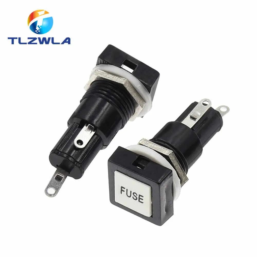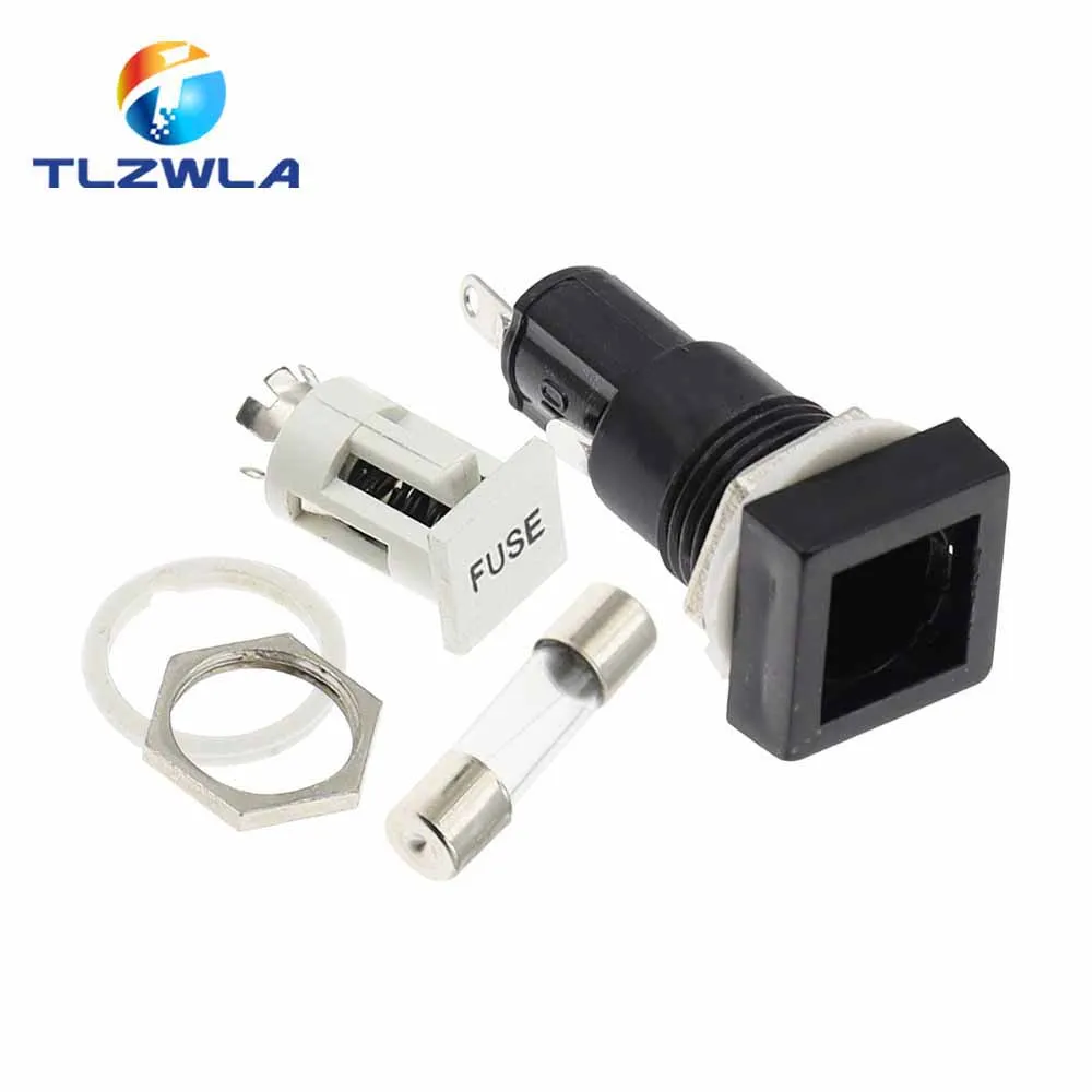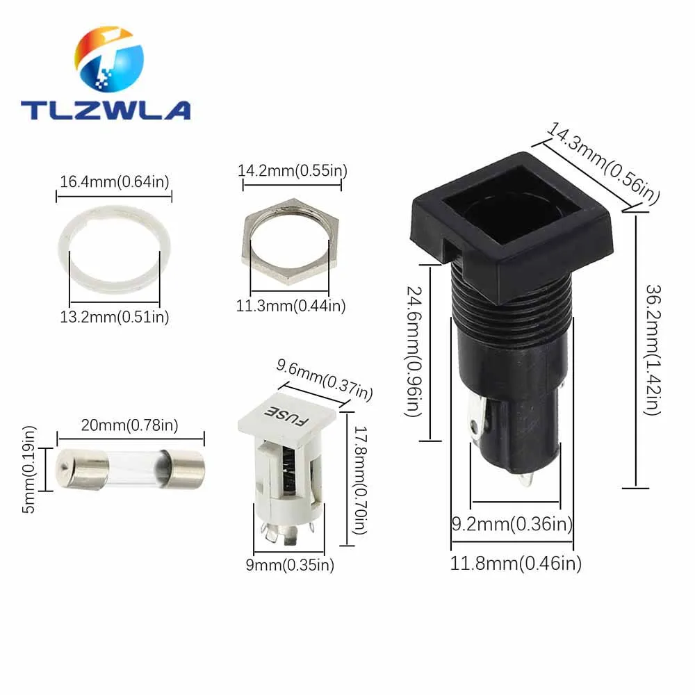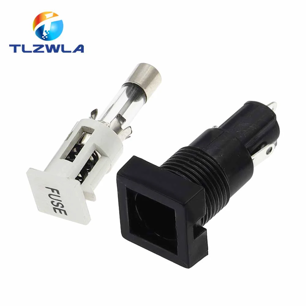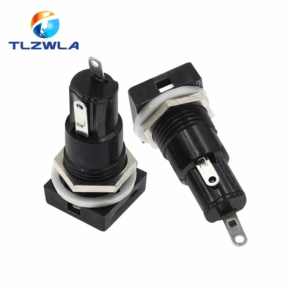 - This set contains five robust, black 5x20mm fuse holders with a cylindrical shape and white “FUSE” labeling on the front for quick identification.