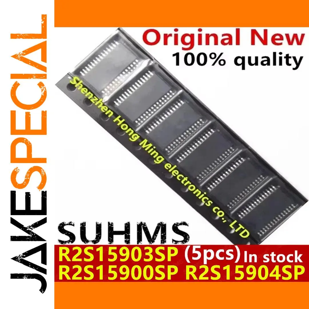 Experience the reliability and sleek design of this set of five new R2S15903SP, R2S15900SP, and R2S15904SP drive ICs. Housed in compact SOP packages, these integrated circuits feature a modern rectangular shape with smooth, matte black surfaces accented by subtle metallic pins. Their sharp, clean edges emphasize precision manufacturing, perfect for high-performance computer applications. The transparent plastic tray showcases the neatly organized chips, reinforcing their professional and high-tech appearance. These components are ready to integrate seamlessly into your electronic projects, ensuring efficient operation with their industry-standard supply voltages and power dissipation levels. Secure and attractive, this set combines aesthetic appeal with technical excellence to elevate your device assembly.
