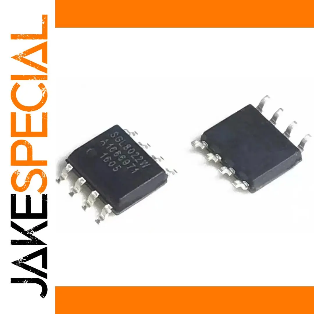 This set of five new, high-quality integrated circuit chips features models SGL8022W, SGL8022K, SGL8022WS, SGL8022S, and SGL8023W, all in a compact SOP-8 package design. Each IC is a standard logic chip with a glossy black surface, equipped with eight shiny, slightly bent metallic pins for reliable connectivity. Designed for compatibility with a range of devices, these chips operate within a standard voltage and power dissipation parameters, ensuring stable performance across typical operating temperatures. Their sleek, minimalist appearance and precise construction make them an ideal choice for professionals seeking dependable, versatile logic ICs for various electronic projects and repairs.