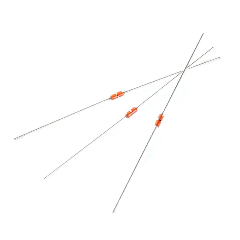 Experience the precision and reliability of this set of 50 MF58 glass-sealed thermistors, perfect for temperature measurement in electronic devices and appliances. Each thermistor boasts a sleek, transparent glass body that reflects light with a smooth, polished finish, creating a modern, high-quality appearance. The vibrant orange protective housing at the base adds a pop of color while ensuring durability. Straight metallic leads extend uniformly from each component, providing straightforward integration into circuits. These thermistors operate over a wide temperature range of -30°C to +280°C, guaranteeing exceptional stability and performance in various environments. Ideal for calibration, temperature sensing, and control applications, this versatile set makes your projects more accurate and efficient. With a compact DIP package, installation is simple, saving you time and effort.