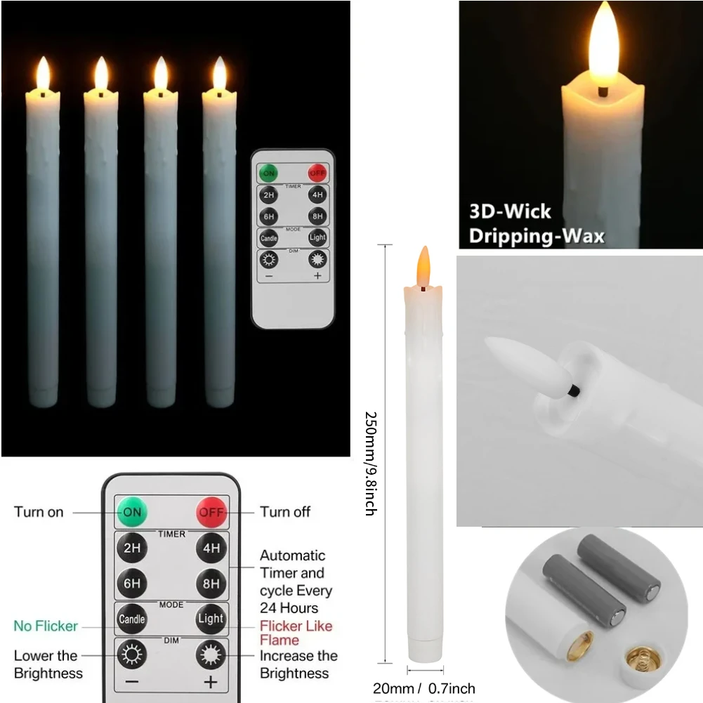 - Each candle measures 6.5″ tall with a 0.79-inch diameter, made from sturdy plastic with a realistic tapering shape for authentic appeal.