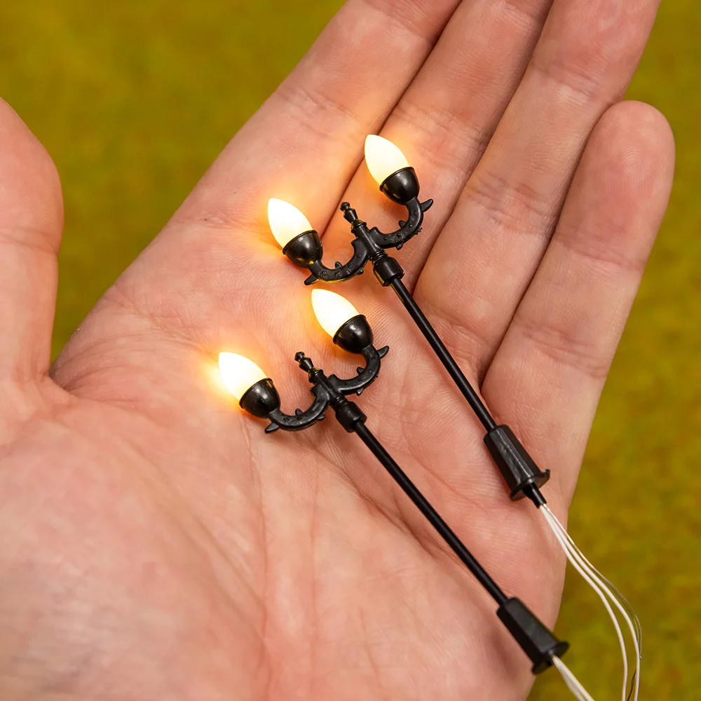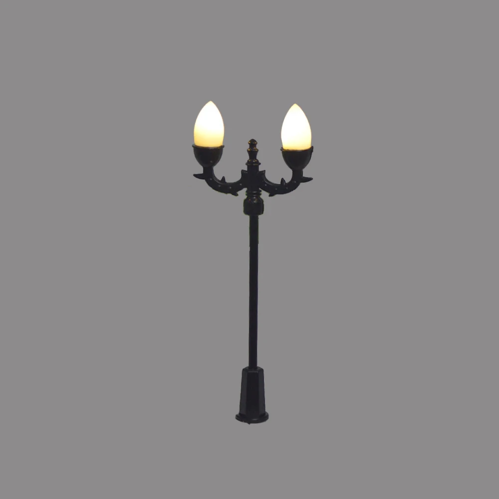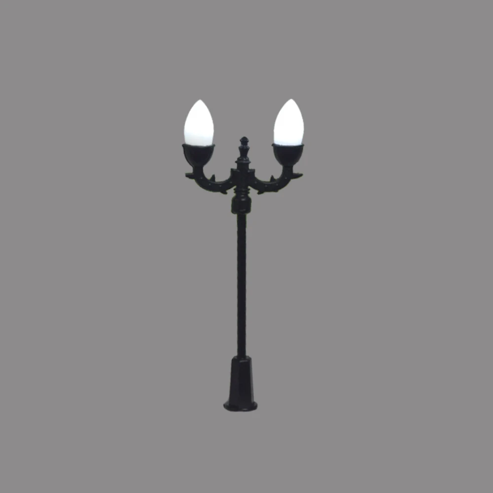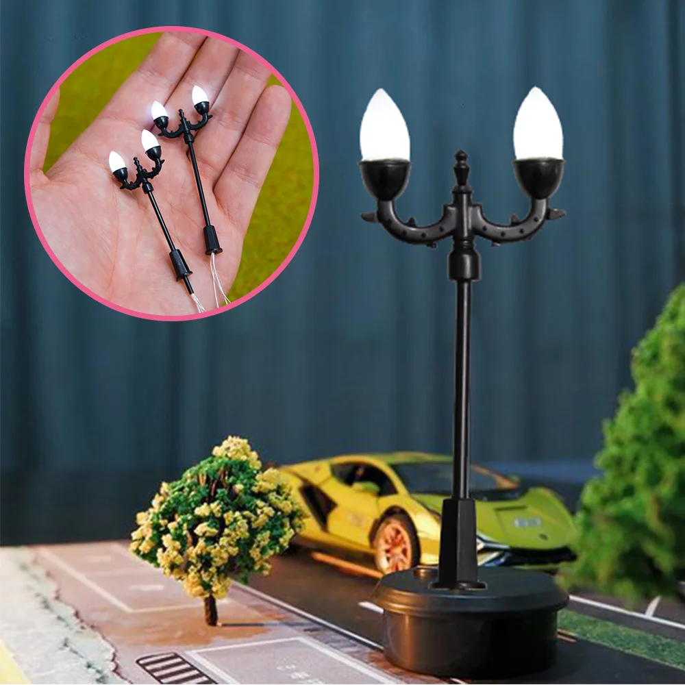 Enhance your miniature scenes with this exquisite set of 6 Miniature 3V Garden Lamp Models. Designed for diorama kits, these lamps feature an elegant double-head LED light setup that perfectly captures the charm of traditional street lighting. Available in warm white and cold white light options, they create an inviting atmosphere, ideal for parks and streetscapes. Crafted from durable ABS plastic, each lamp is built to withstand indoor and outdoor settings. With a compact design, this lamp set is a stunning addition to any landscape layout, helping you bring your models to life with style and sophistication.