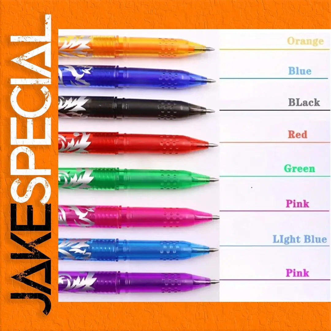 Elevate your writing and drawing experience with this set of 6 multi-color erasable gel pens. Each pen features a translucent plastic barrel in vibrant colors including orange, blue, black, red, green, and pink, ensuring a visually appealing workspace. The fine-point metallic tips allow for precise lines, while the dotted texture grips provide comfort during prolonged use. With erasable gel ink, mistakes are easily corrected, making these pens perfect for both creative tasks and everyday notes. Enhance your school or office supplies with these versatile tools, and enjoy the convenience of a color guide displaying purple, green, mixed A, mixed B, mixed C, and light blue inks.