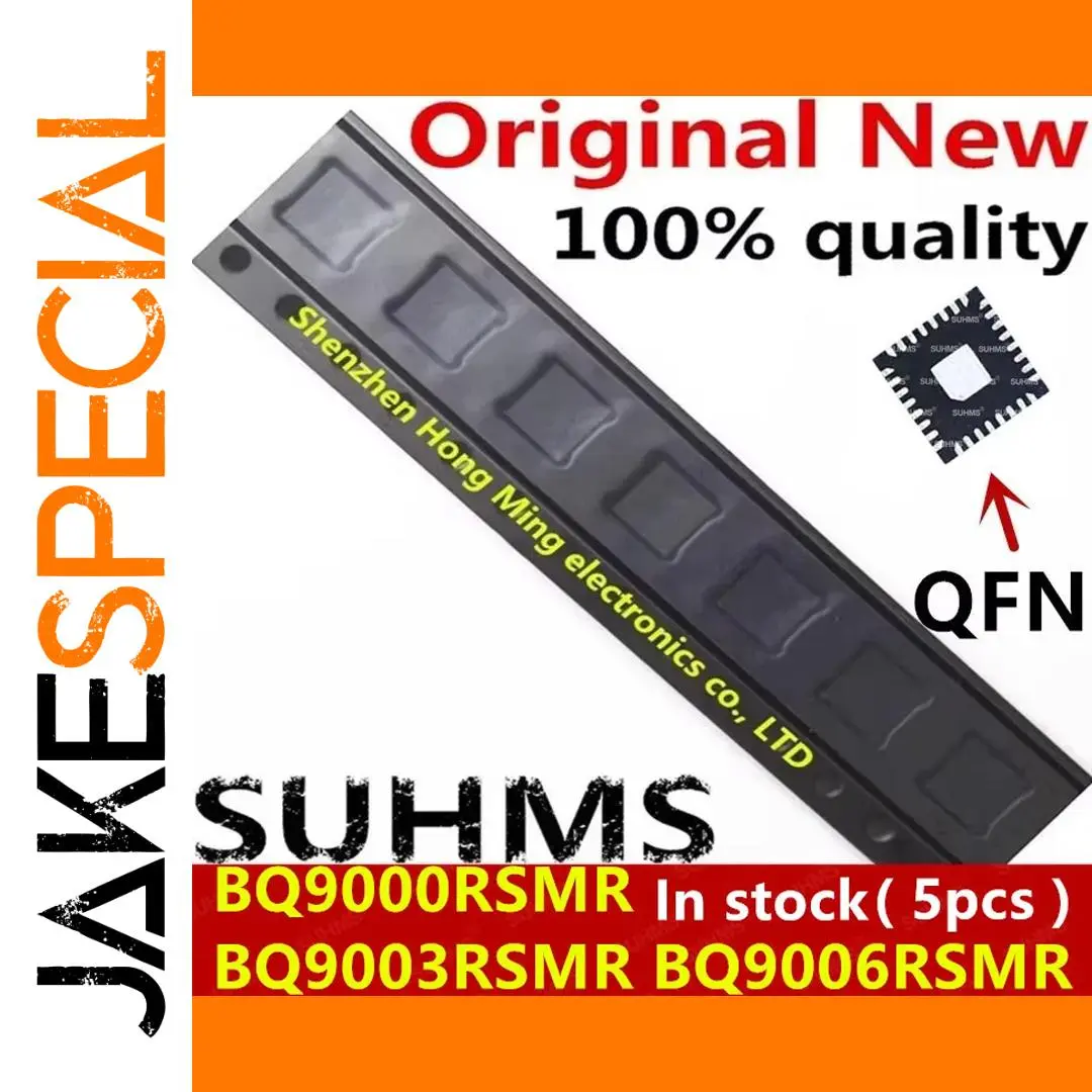 Upgrade your electronic projects with this set of five high-quality voltage regulators, including models BQ9000RSMR, BQ9006RSMR, and BQ9003RSMR, all housed in durable QFN-32 packages. Designed for reliability, these regulators operate within standard conditions, featuring a sleek black square-shaped design with a central white label area for easy identification. They are free from high concern chemicals, customizable, and suitable for computer applications, with supply voltage and dissipation power conforming to international standards. Perfect for precise power management, these regulators ensure your devices run smoothly and efficiently in a professional, industrial aesthetic.