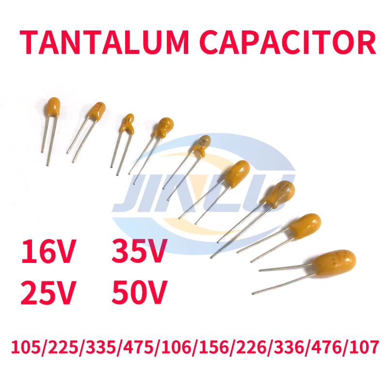 - Five high-quality tantalum capacitors, each with rated voltages of 10V, 16V, 20V, 25V, 35V, and 50V, suitable for a broad range of electronic applications.