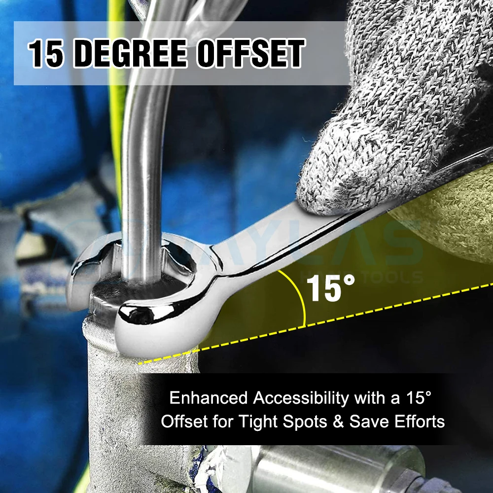- 15-degree offset design enables easy access in confined spaces, reducing strain and improving precision during automotive and plumbing repairs.